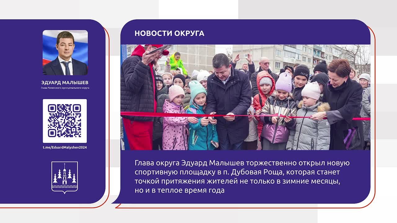 Глава округа Эдуард Малышев торжественно открыл новую спортивную площадку в п.Дубовая Роща, которая станет точкой притяжения жителей не только в зимние месяцы, но и в теплое время года