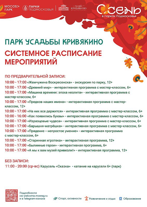 Парки Воскресенска приглашают гостей и жителей Воскресенска на свои мероприятия, которые пройдут с 17 по 23 ноября 2025 года.