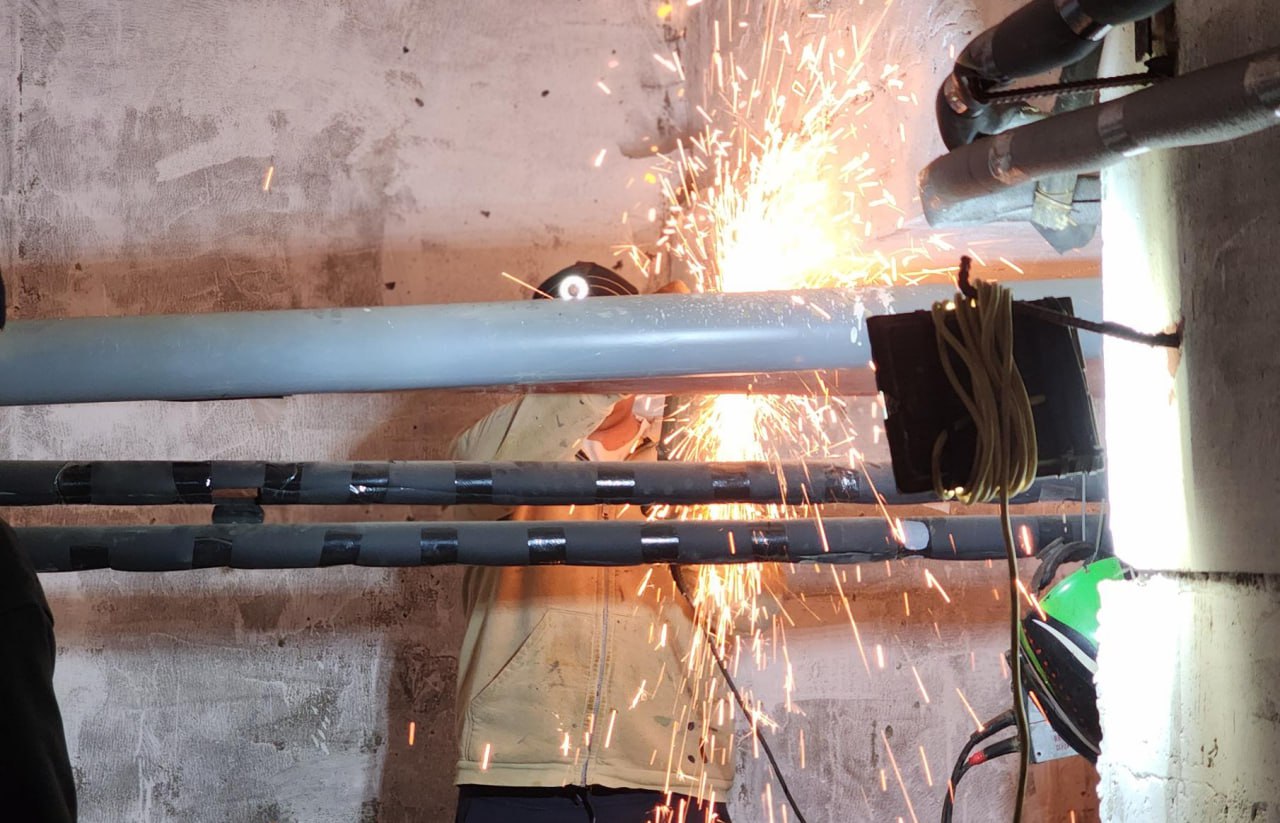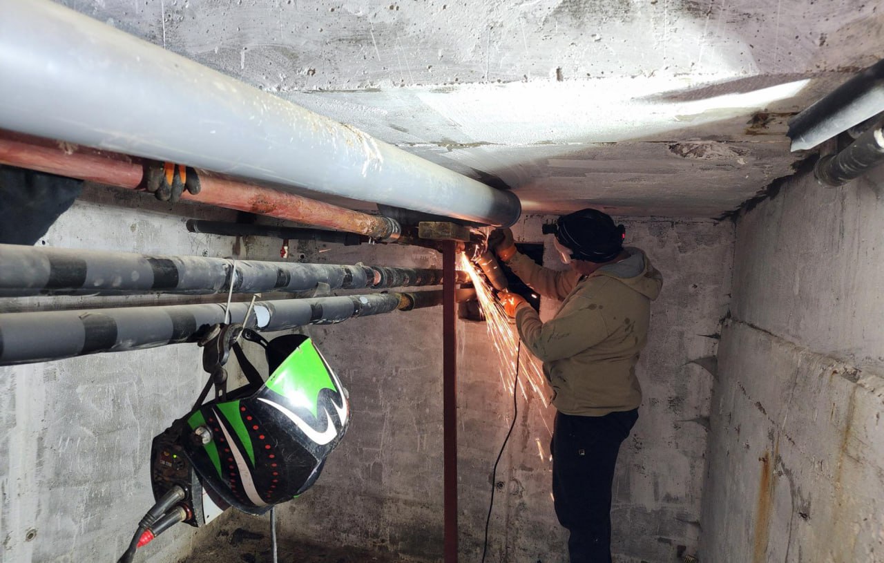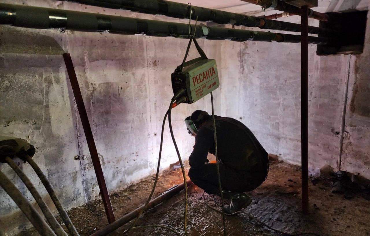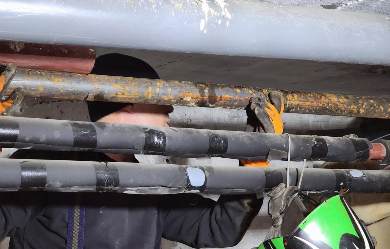 Мастер участка Оксана Борисова рассказала также о замене аварийного участка трубы центрального отопления. Старая труба, на которой ранее были установлены несколько ремонтных хомутов, разобрана. На её место специалисты установили новый отрезок трубы, произведя сварку для обеспечения герметичности и долговечности.