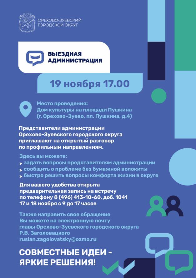 19 ноября приглашаю жителей на выездной прием команды администрации в городе Орехово-Зуево.