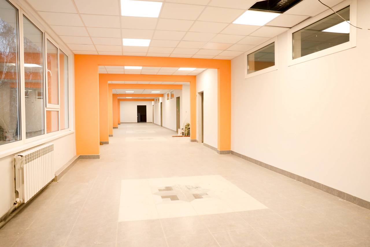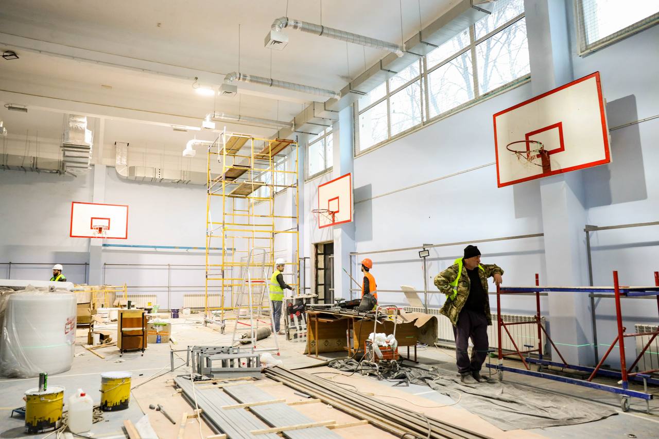 На сегодняшний день в полном объеме выполнено обновление фасада. На объекте ведутся работы по входной группе, укладка напольной плитки и линолеума, монтаж системы электроснабжения, чистовая отделка спортивного зала.