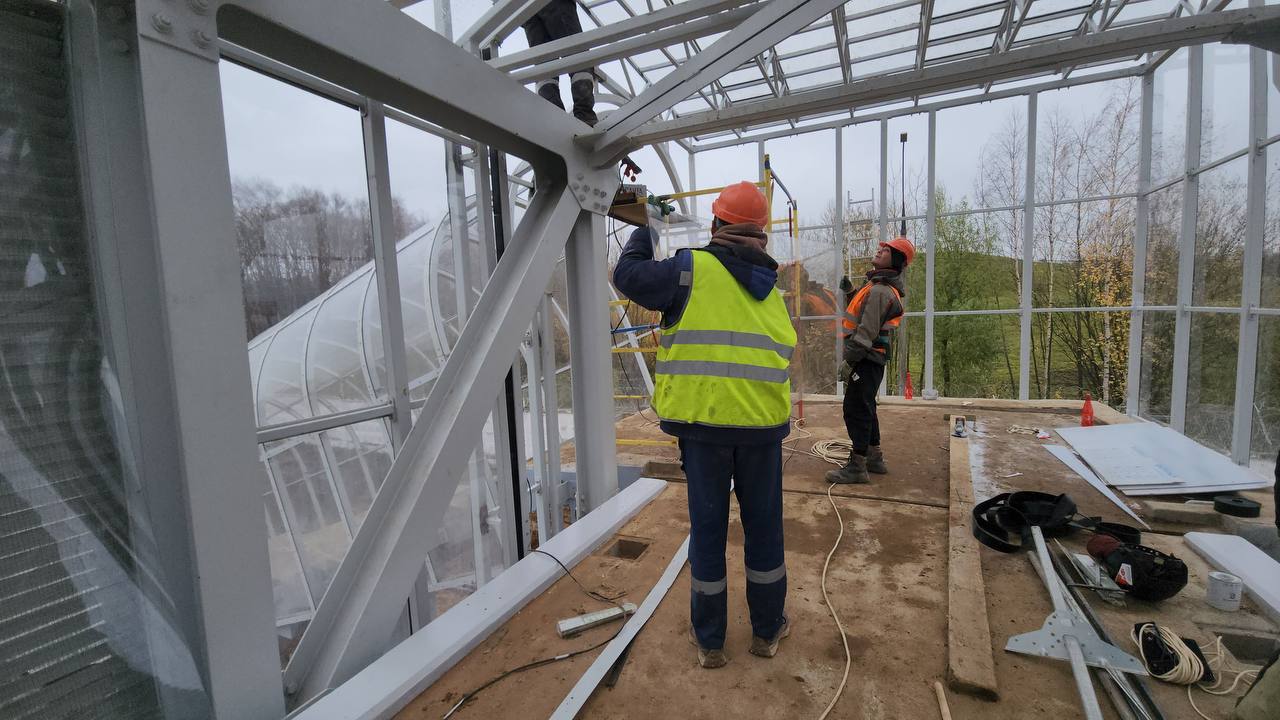 На третьем – 75%. Ведётся устройство металлокаркаса для последующего остекления.
