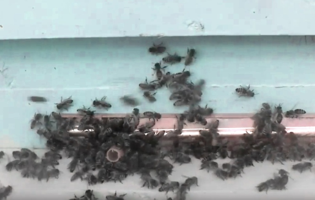 - Агрессивное поведение пчел, кружение их вокруг улья.