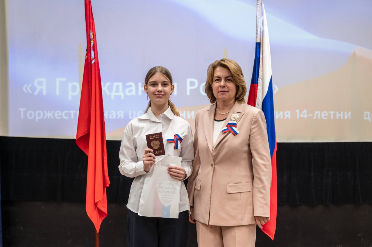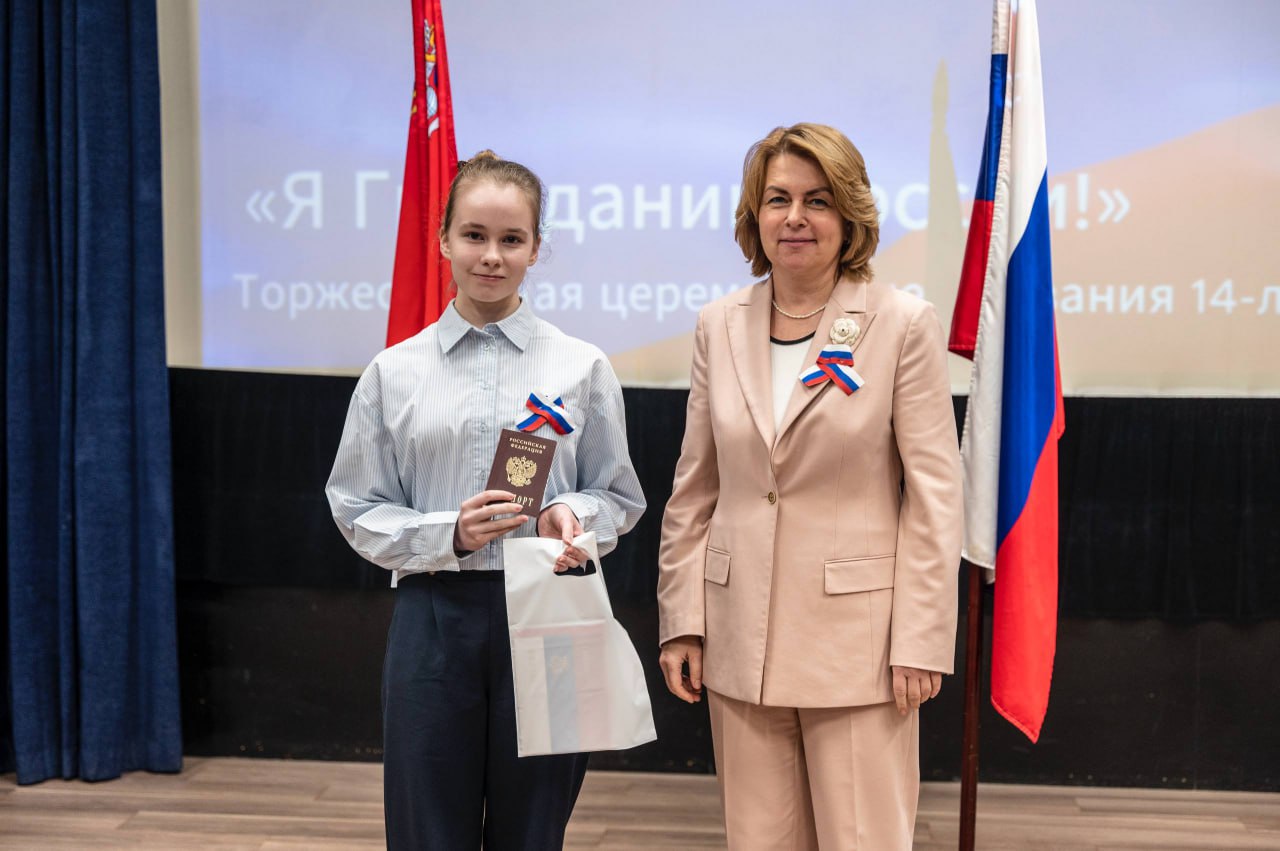 Глава г.о. Домодедово Евгения Хрусталева вручила первые паспорта 19 юношам и девушкам, поздравила ребят и отметила значимость этого события.