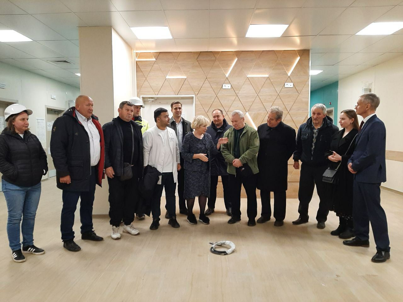 Строящееся здание осмотрели снаружи и внутри: прошли по просторным холлам, оценили готовность будущих кабинетов, где уже устанавливают медицинскую мебель, новое оборудование и даже тяжелую технику — например, компьютерный томограф. Благодаря этому жителям поселка больше не придется выезжать в соседние города, чтобы пройти точную диагностику или получить консультацию узких специалистов.