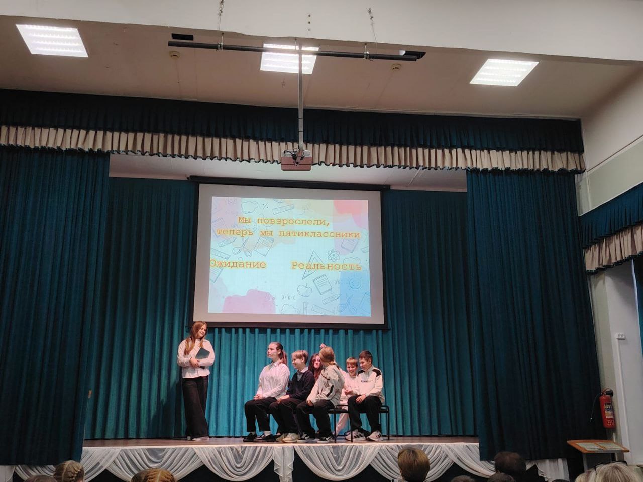 На торжественном мероприятии для учащихся 5 классов ученики 6 «Б» подготовил сценку «Ожидание и реальность» -