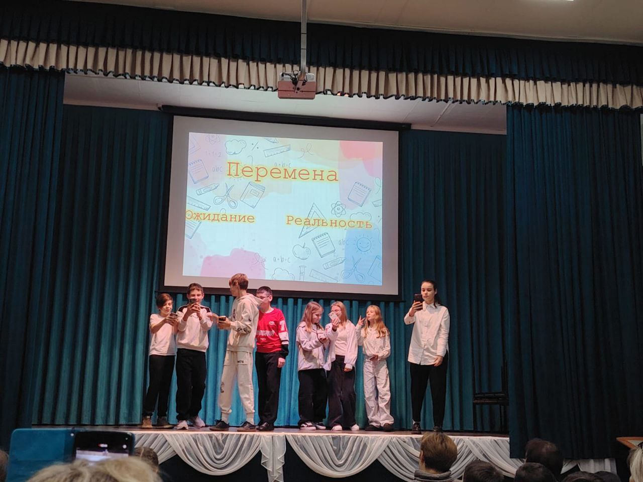 Ребята показали комические аспекты школьной жизни через забавные ситуации, которые переживают персонажи. Сценка иллюстрирует, как ожидания часто не совпадают с реальностью. Ярко, весело и позитивно прошло выступление.