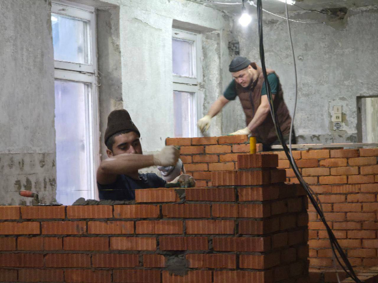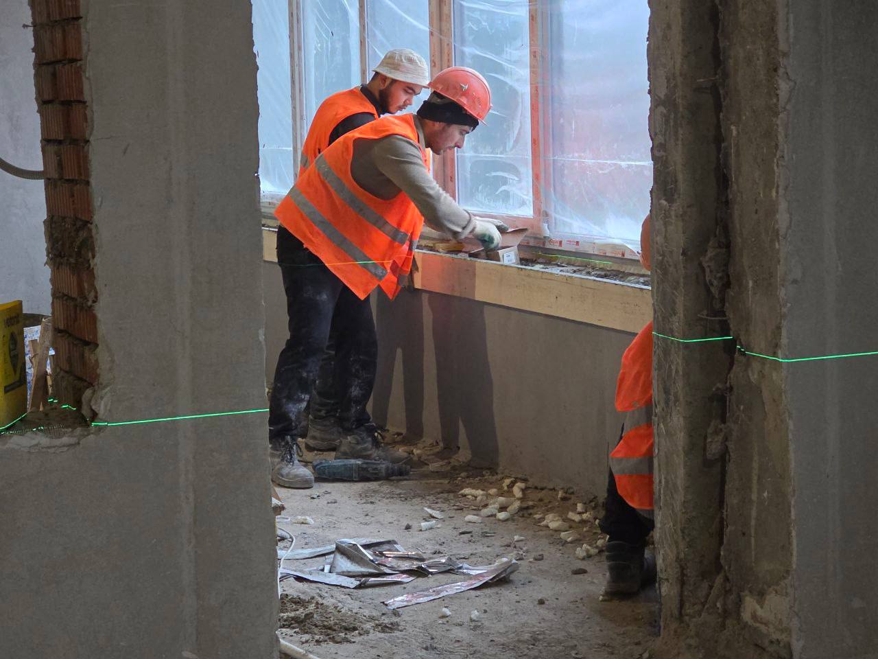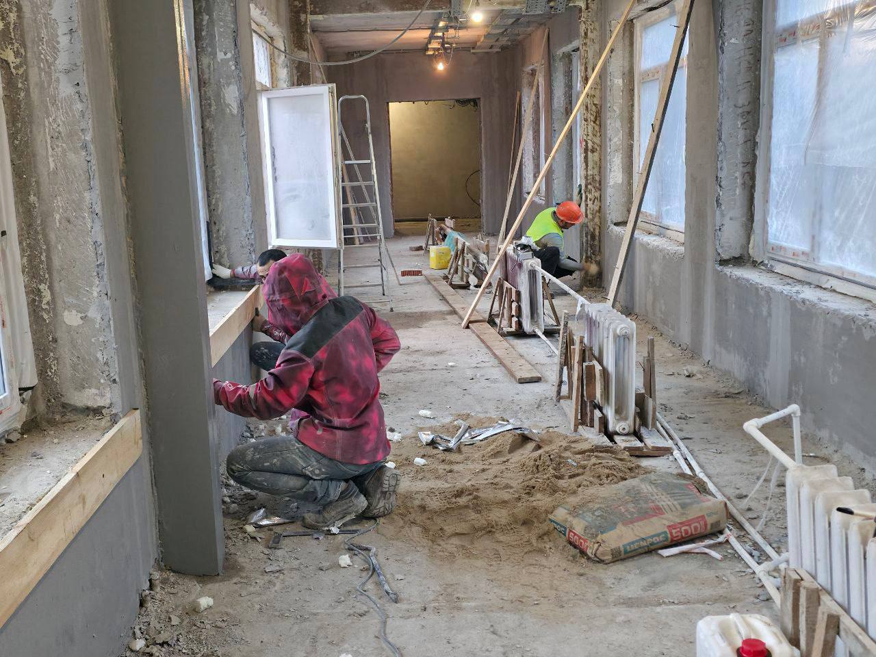 Сейчас подрядчик проводит штукатурку стен, частичную отделку, электромонтажные и сантехнические работы. Следующим этапом станет заливка полов, включая систему «тёплый пол» в спальных помещениях, спортзале и актовом зале.