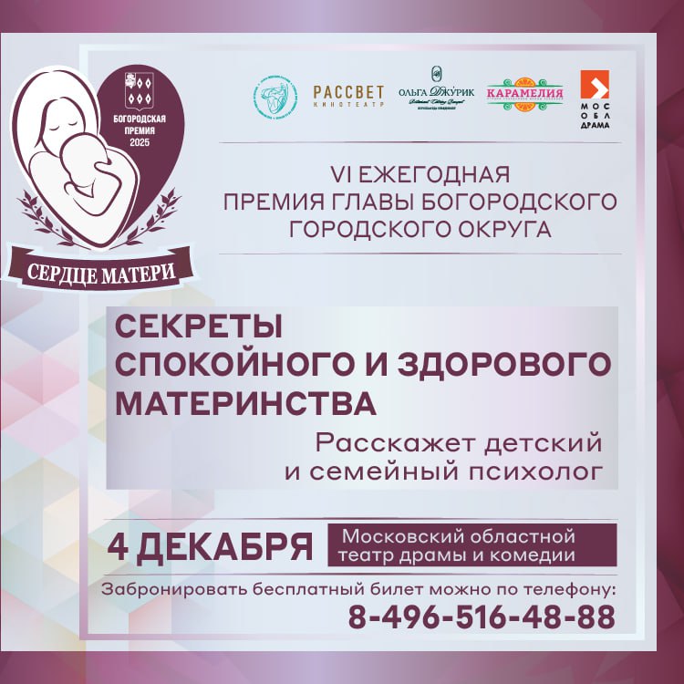 В Богородском округе 4 декабря пройдет шестая ежегодная премия «Сердце матери».
