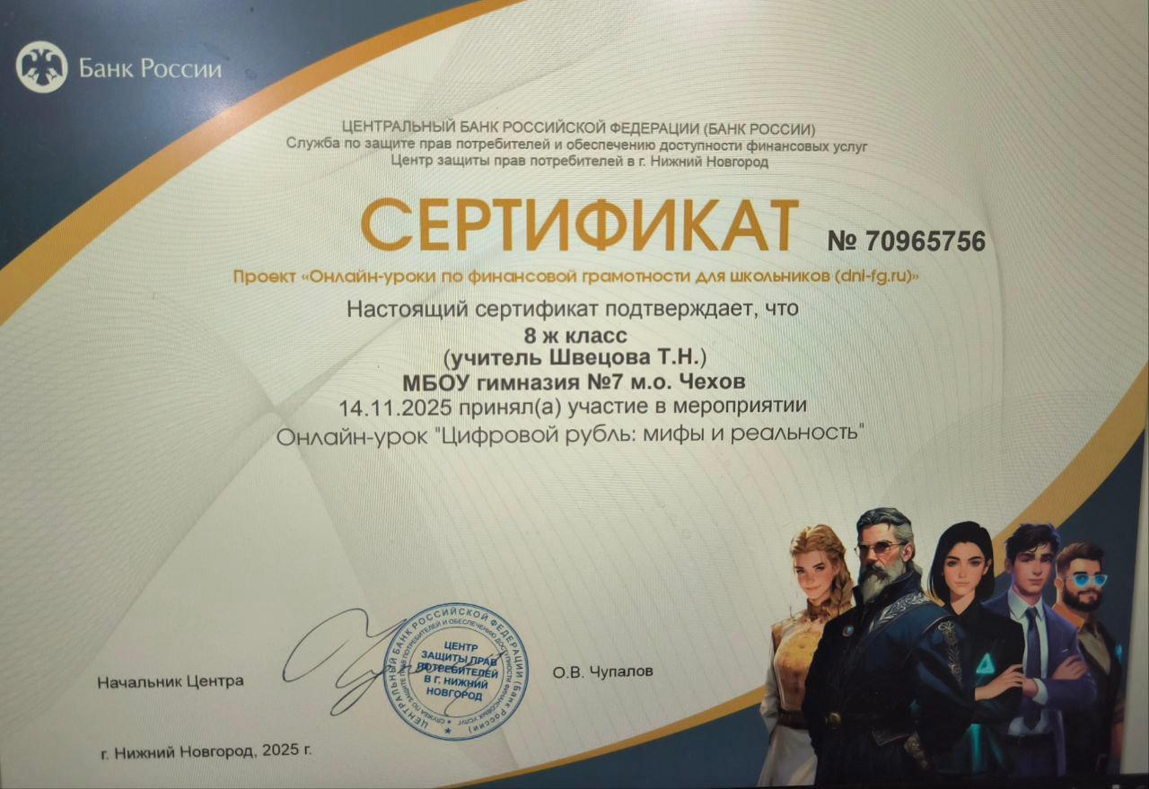 14 ноября учащиеся 8 «Ж» класса приняли участие в онлайн-уроке на тему «Цифровой рубль: мифы и реальность».