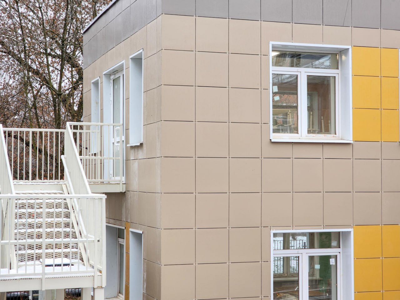 За время ремонта строители провели масштабную модернизацию здания. Были полностью заменены инженерные коммуникации, обновлены кровля и фасад. Специалисты смонтировали эвакуационные лестницы и возвели дополнительные перегородки для размещения медицинского кабинета, серверной и комнаты охраны.