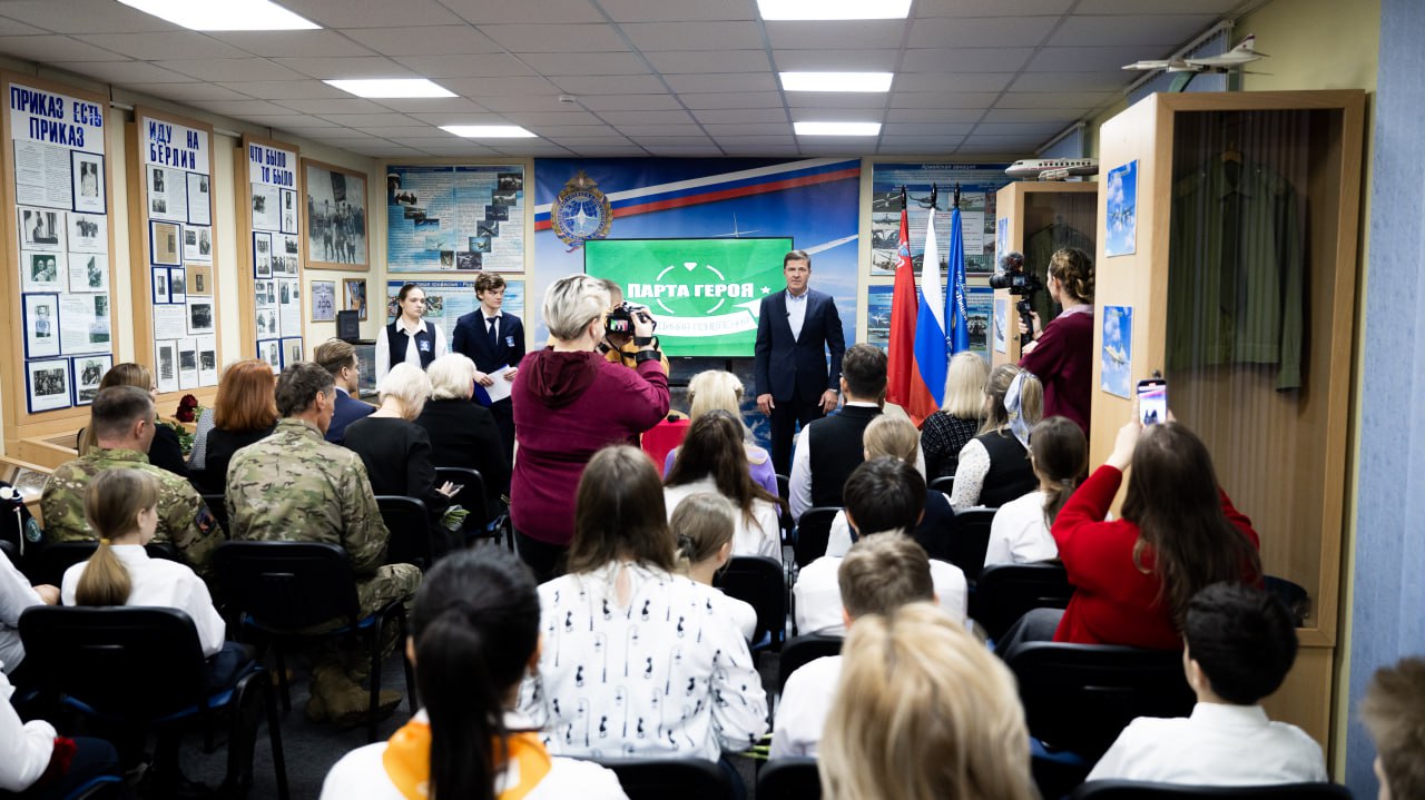 В лицее №3 Дзержинского открыли «Парту Героя» в память об участнике СВО, уроженце города Сергее Михайлове.