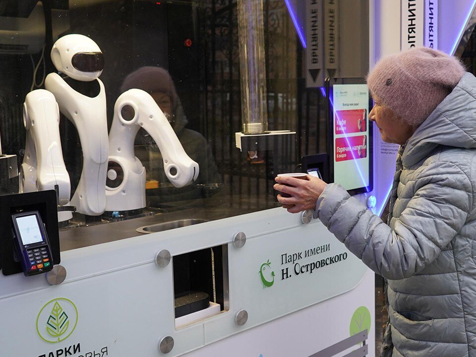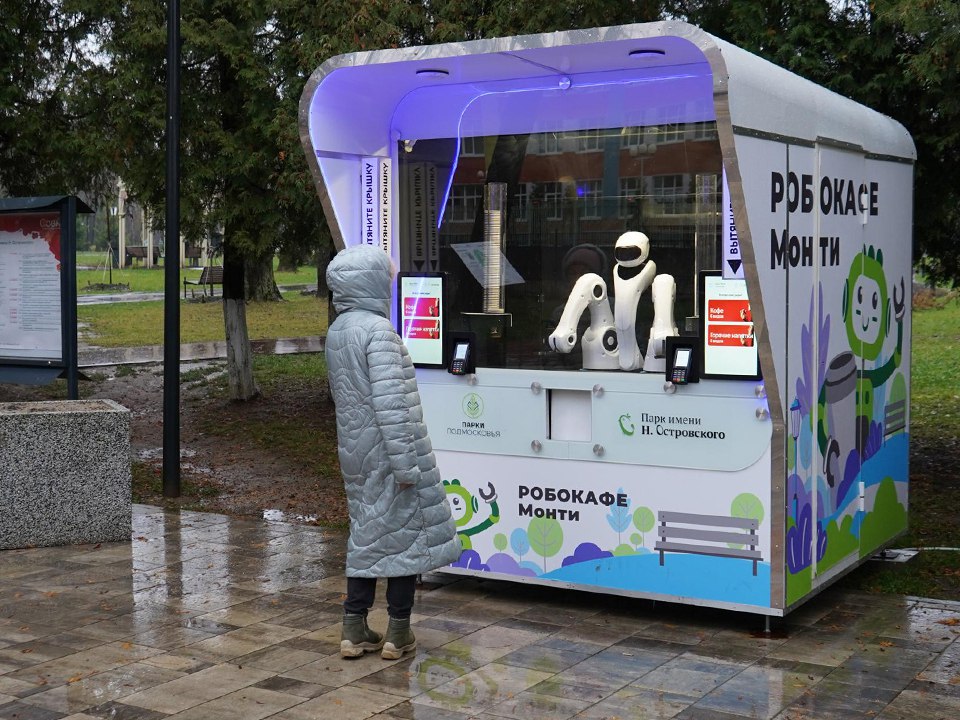 Робот-бариста Монти разливает кофе в ступинском парке Островского с технологичным шармом