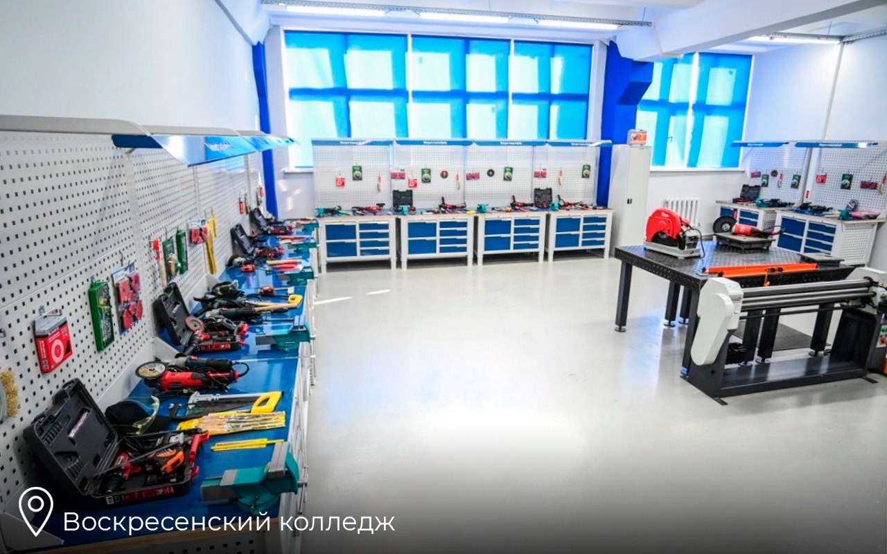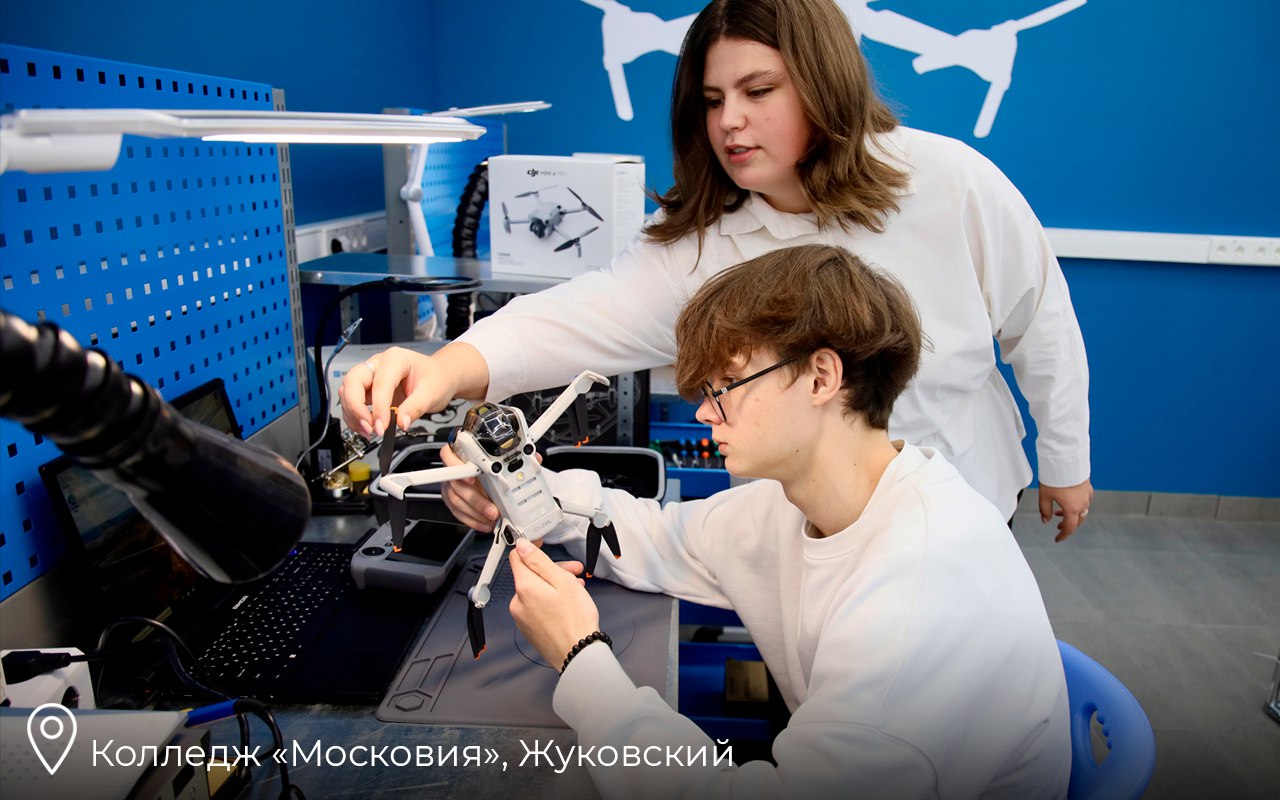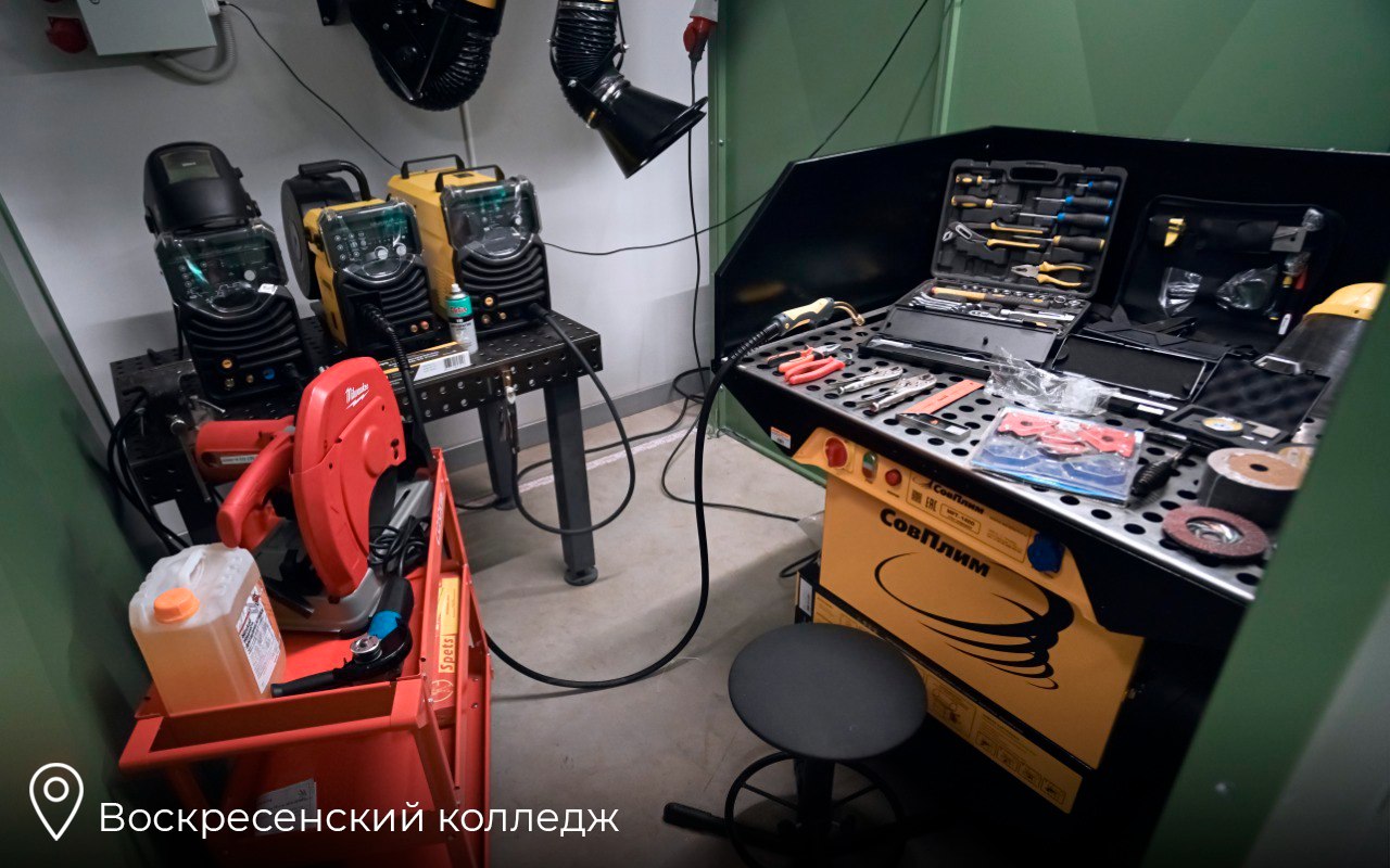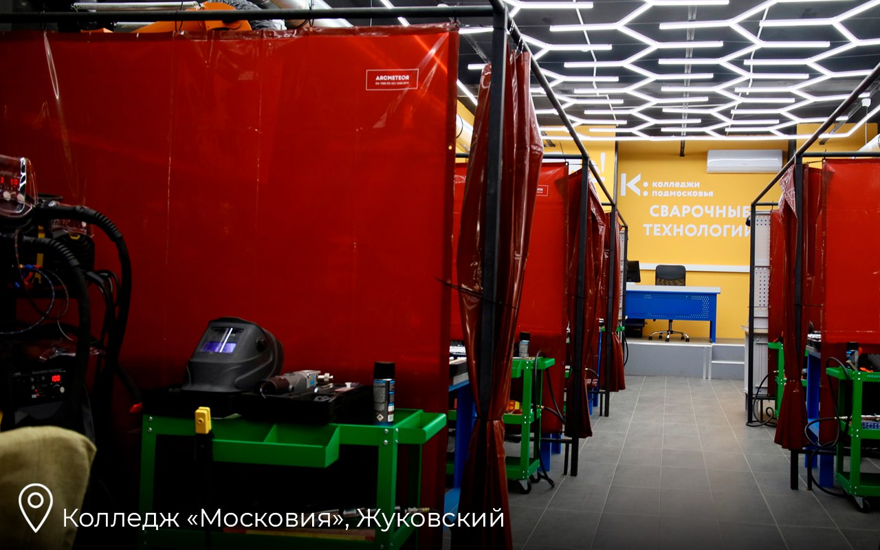 В колледже «Московия» в Жуковском появились современные мастерские для сварки (с электропечами, оборудованием, тренажером), БПЛА (со стендами, трассой, VR-тренажером, квадрокоптерами) и электромонтажных работ (с учебными стендами и инструментами).
