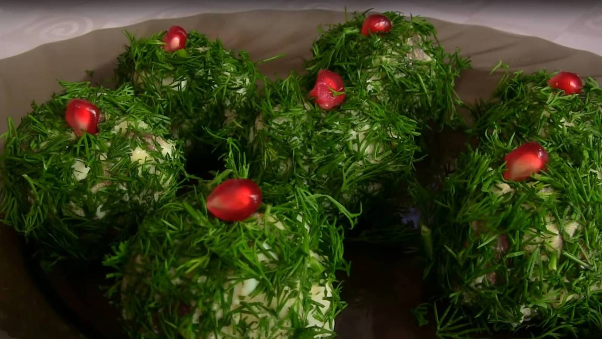 Добавьте соль и перец по вкусу. Тщательно перемешайте. Очистите гранат и мелко порубите укроп. Сформируйте из полученной массы шарики, обваляйте их в зелени и украсьте зернами граната, советует портал «Лайфхакер».