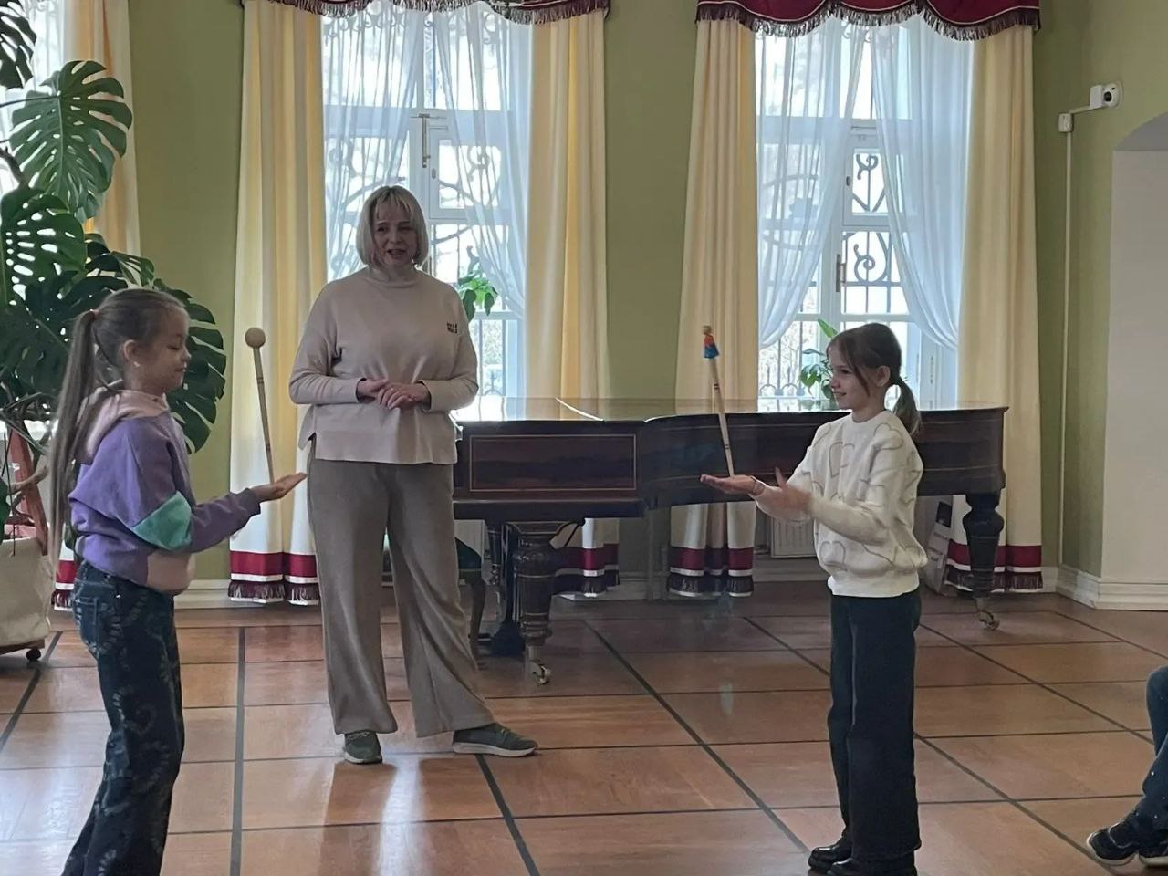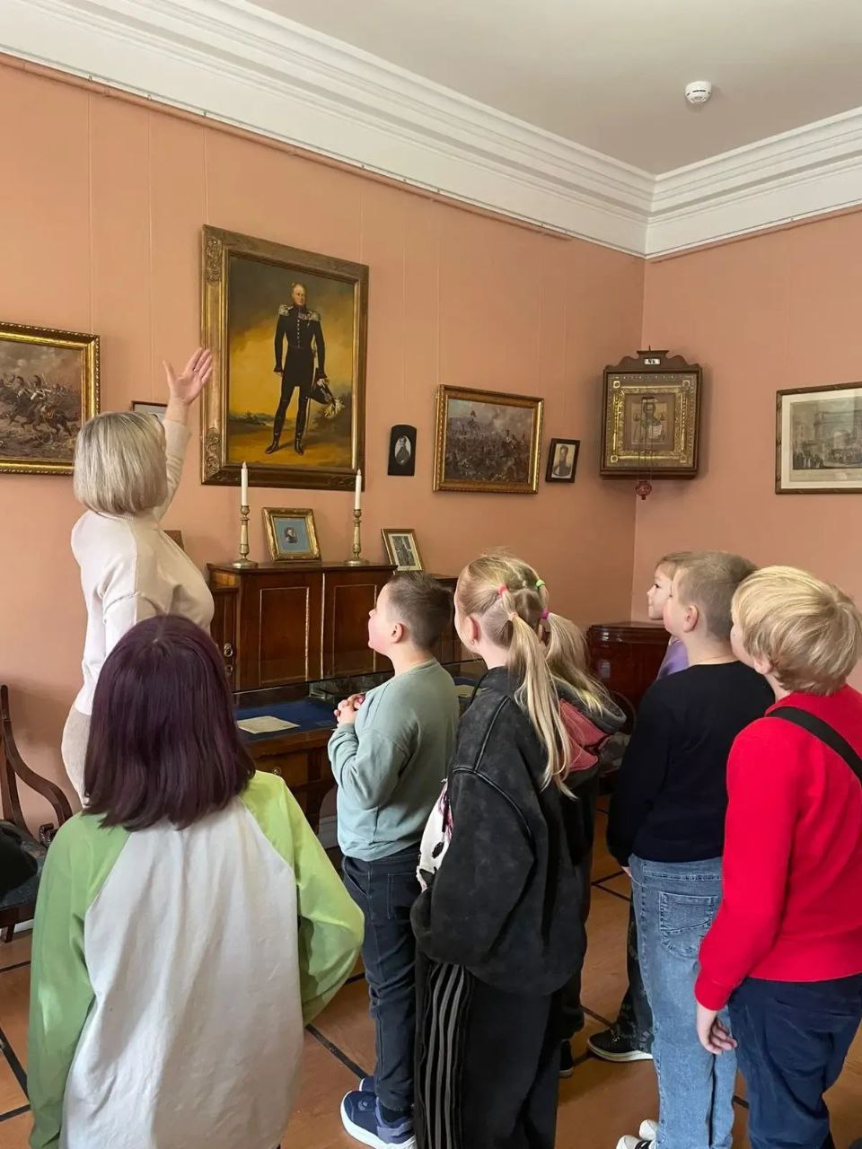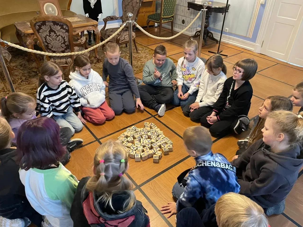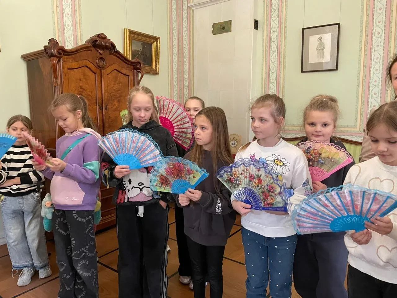 Экскурсанты в игровой форме познакомились с историей усадьбы. Путешествуя по залам основного этажа главного дворянского дома, узнали названия, назначения комнат и кто в них проживал. Дети познакомились с правилами этикета того времени и с азами «языка вера».
