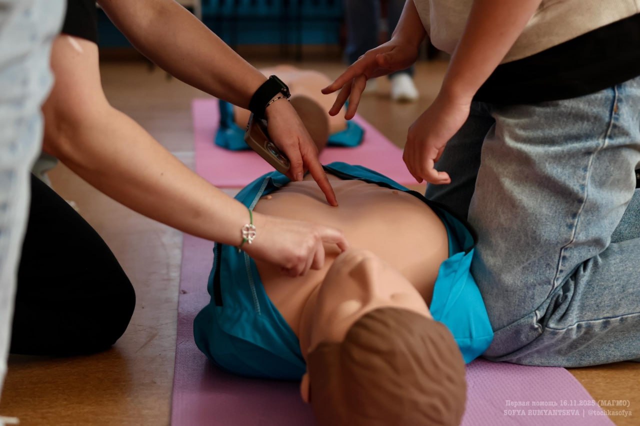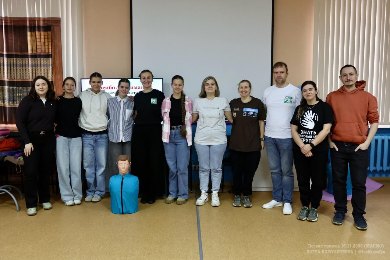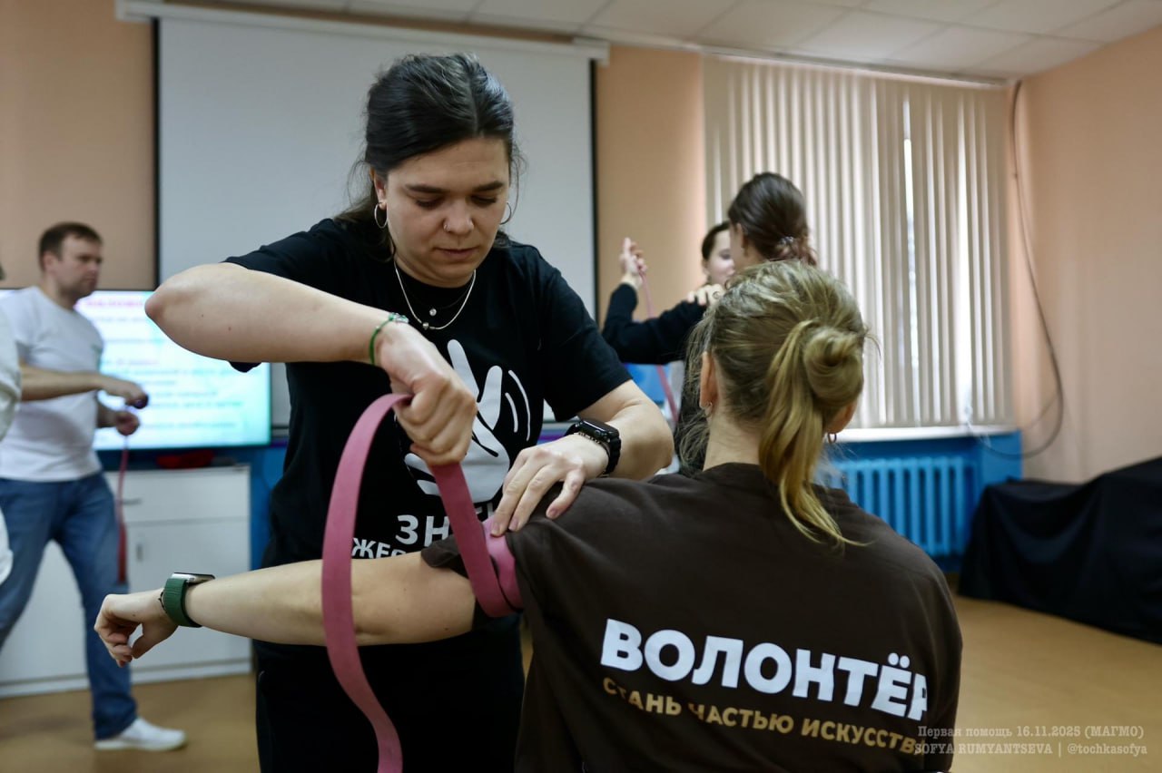 Руководитель проекта Лидия Соболевская и ее коллега Егор Сафронов провели для участников занятия по отработке действий в экстренных ситуациях. Волонтеры тренировались на манекенах и друг с другом, что сделало практику максимально реалистичной и понятной.
