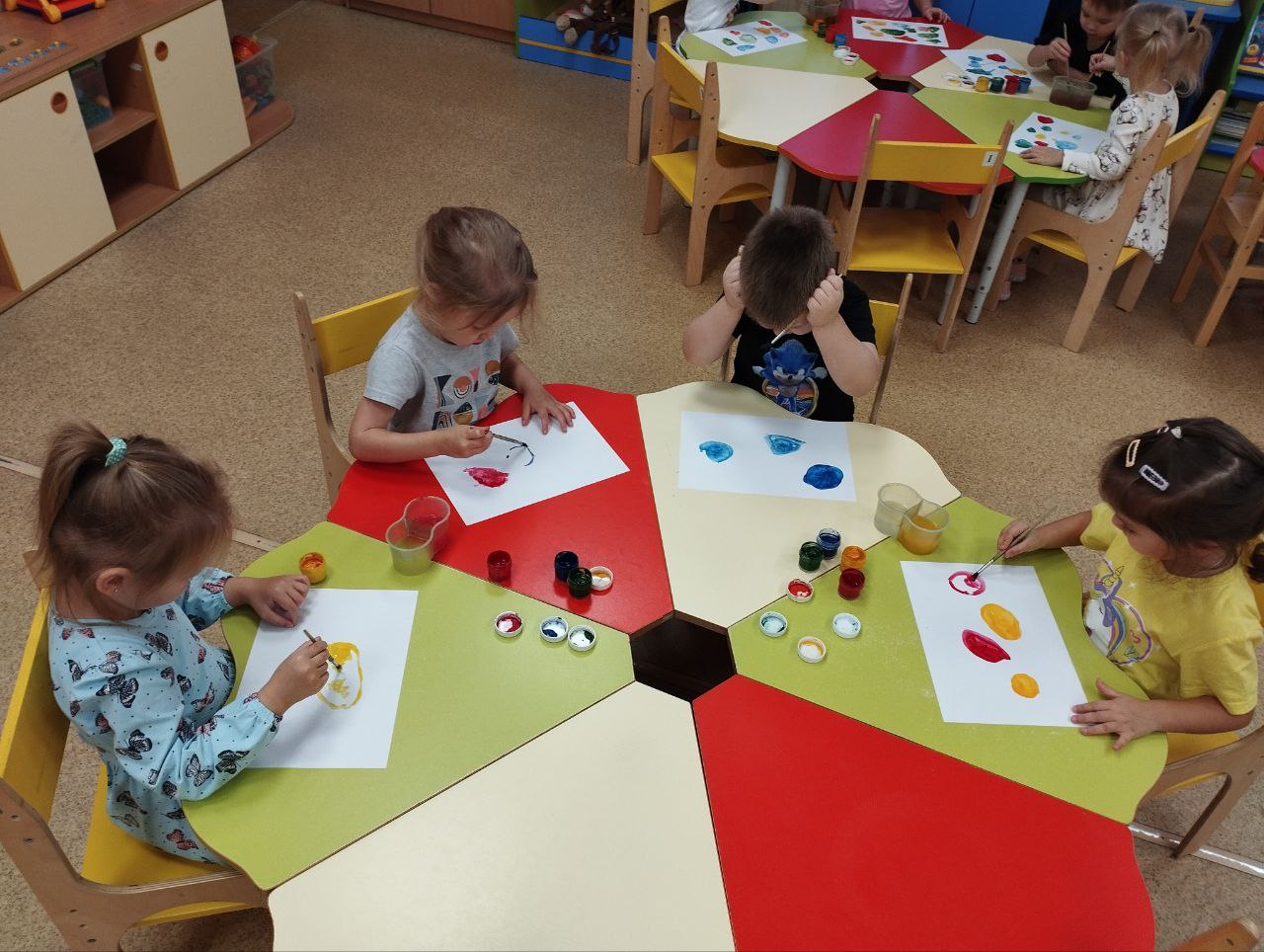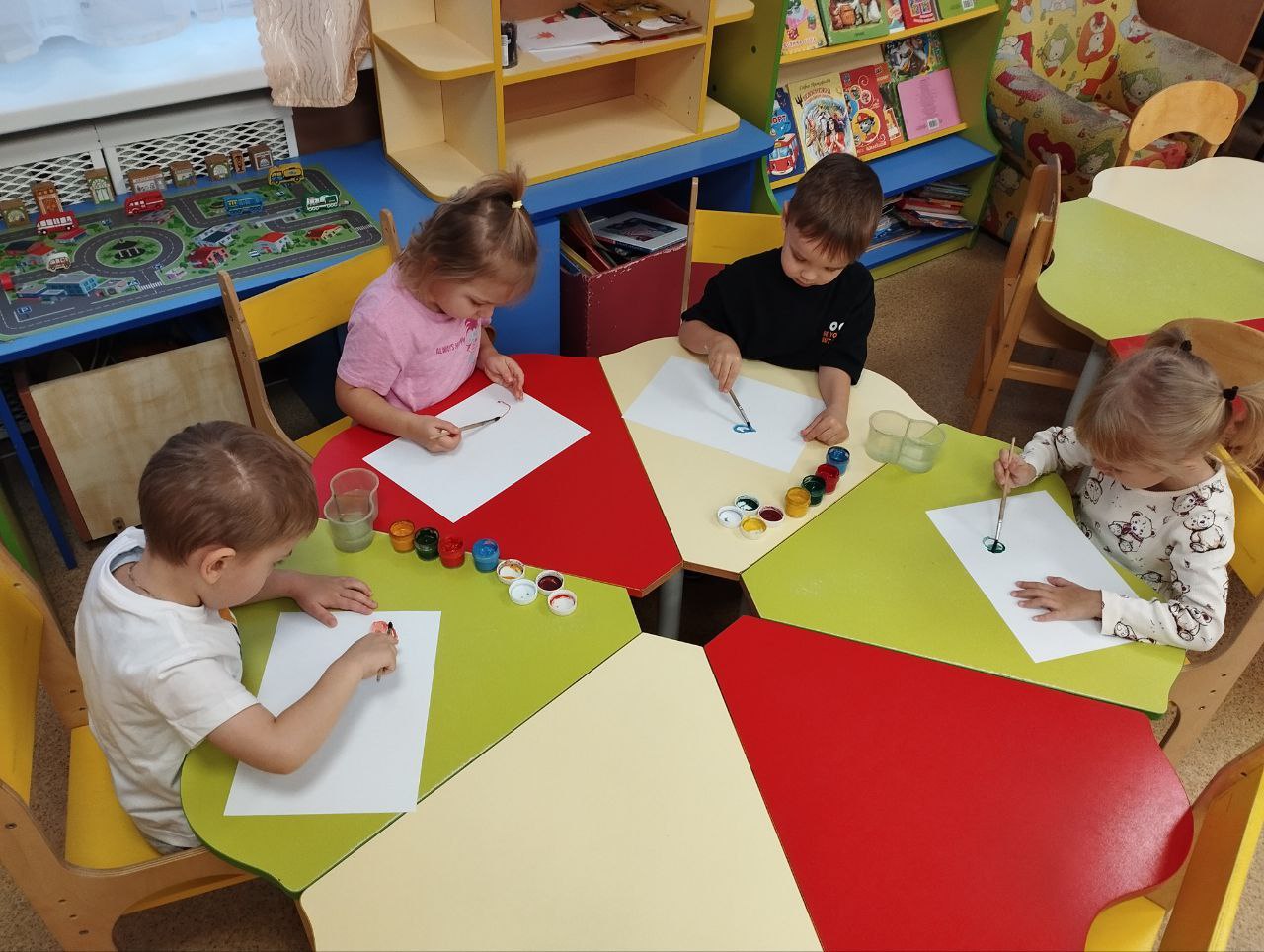 •Младшая группа рисовала "Разноцветные мячи" , осваивая формы и кисть.
