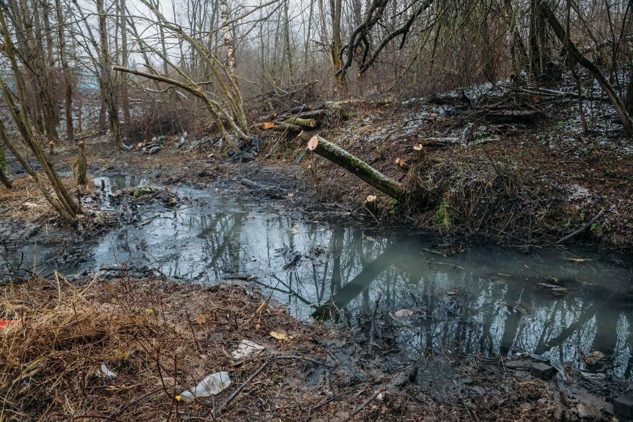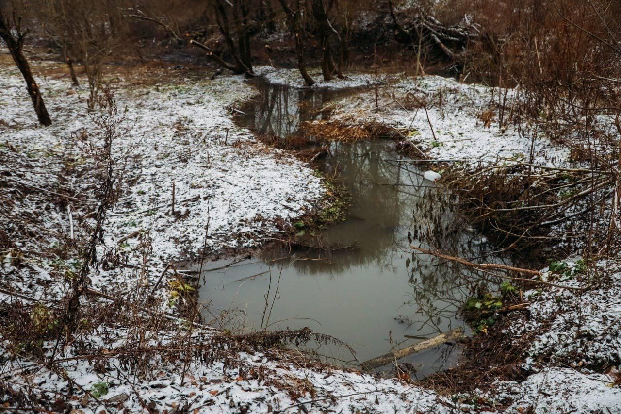 Русло и береговая линия безымянного ручья в районе Московского шоссе преобразились