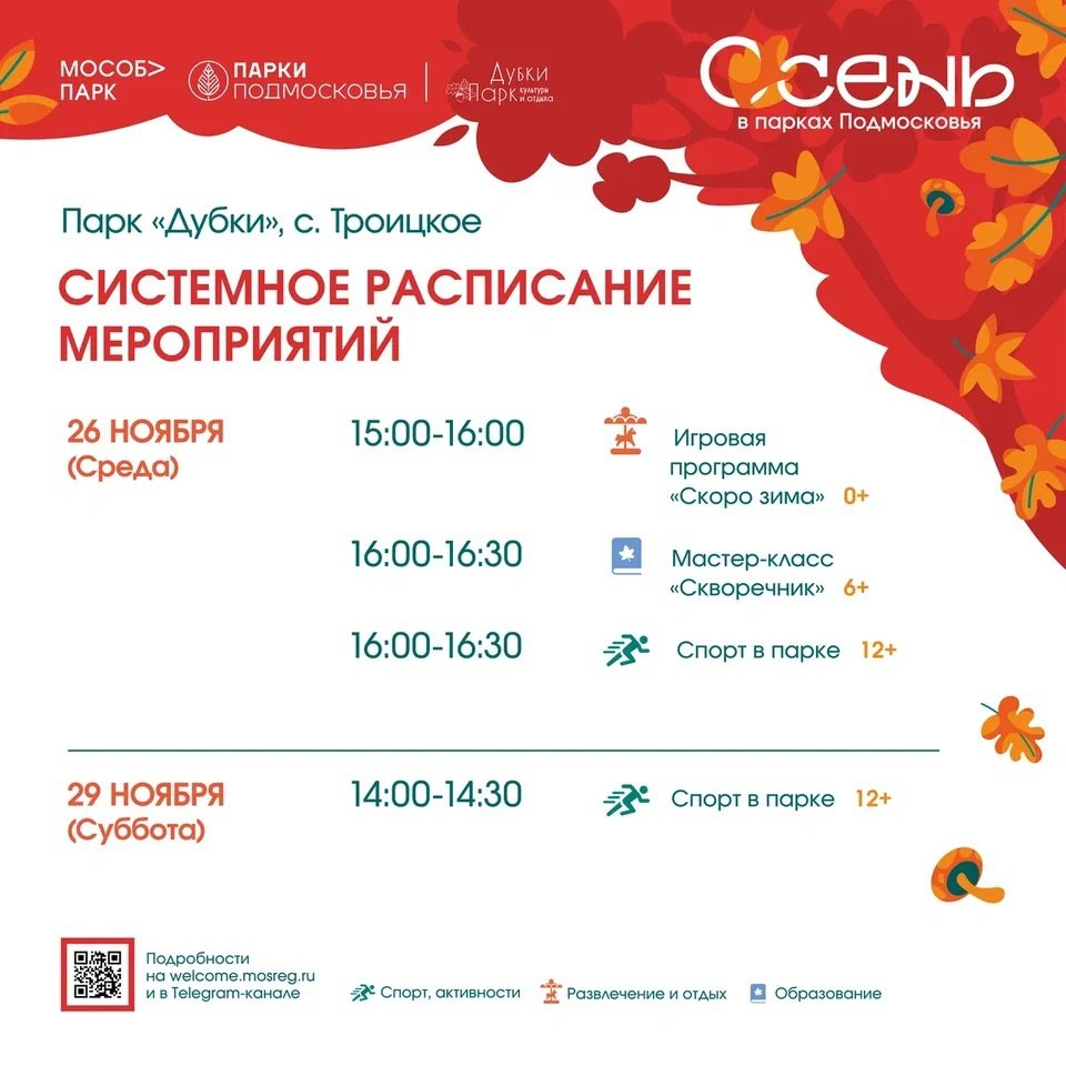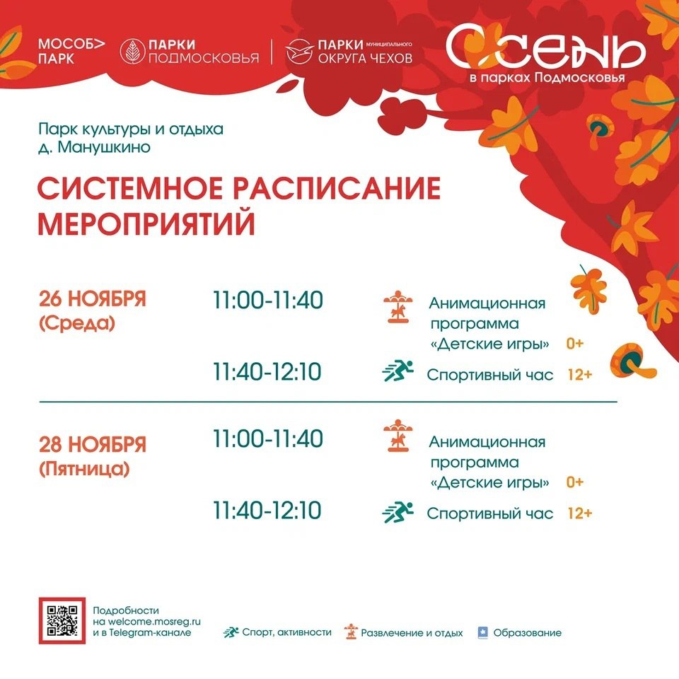 Расписание на неделю в Парках Чехова (24 ноября - 30 ноября).