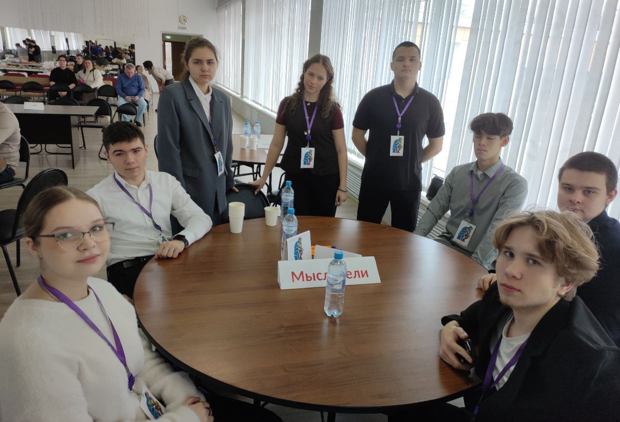 23 ноября 10 команд из учебных заведений Чехова собрались в ДК "Дружба", чтобы выявить сильнейшего в интеллектуальной игре "Что? Где? Когда?" Нашу школу представляла команда "Мыслители". Участники команды: