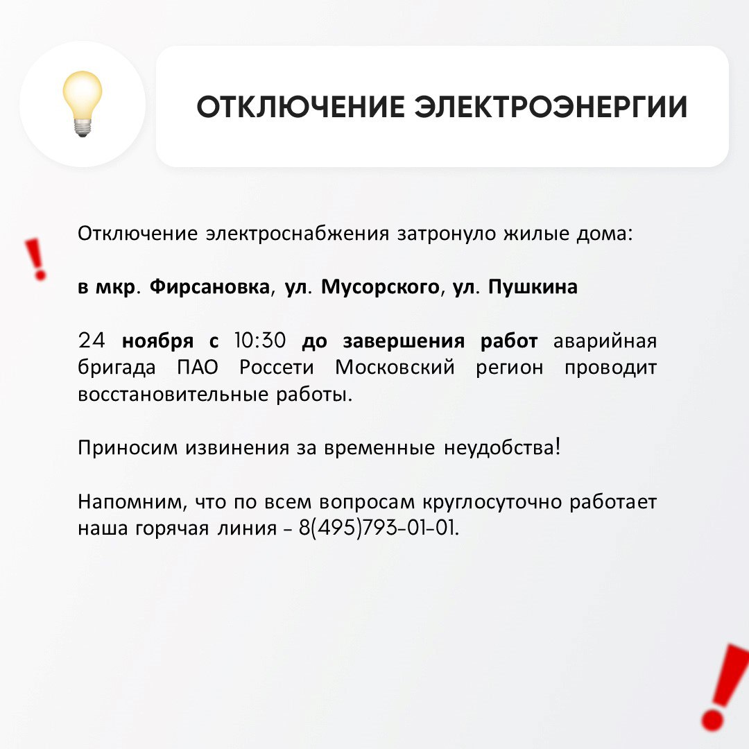 Информацию о работе ресурсоснабжающей организации можно получить по номеру горячей линии: +7 495-793-01-01.