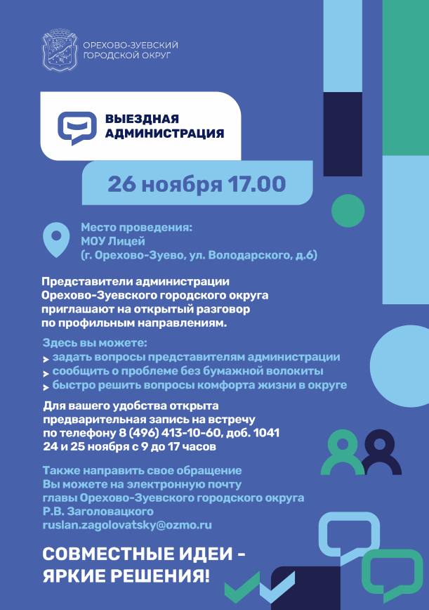 26 ноября в 17.00 выездная администрация проведёт приём в г. Орехово-Зуево.