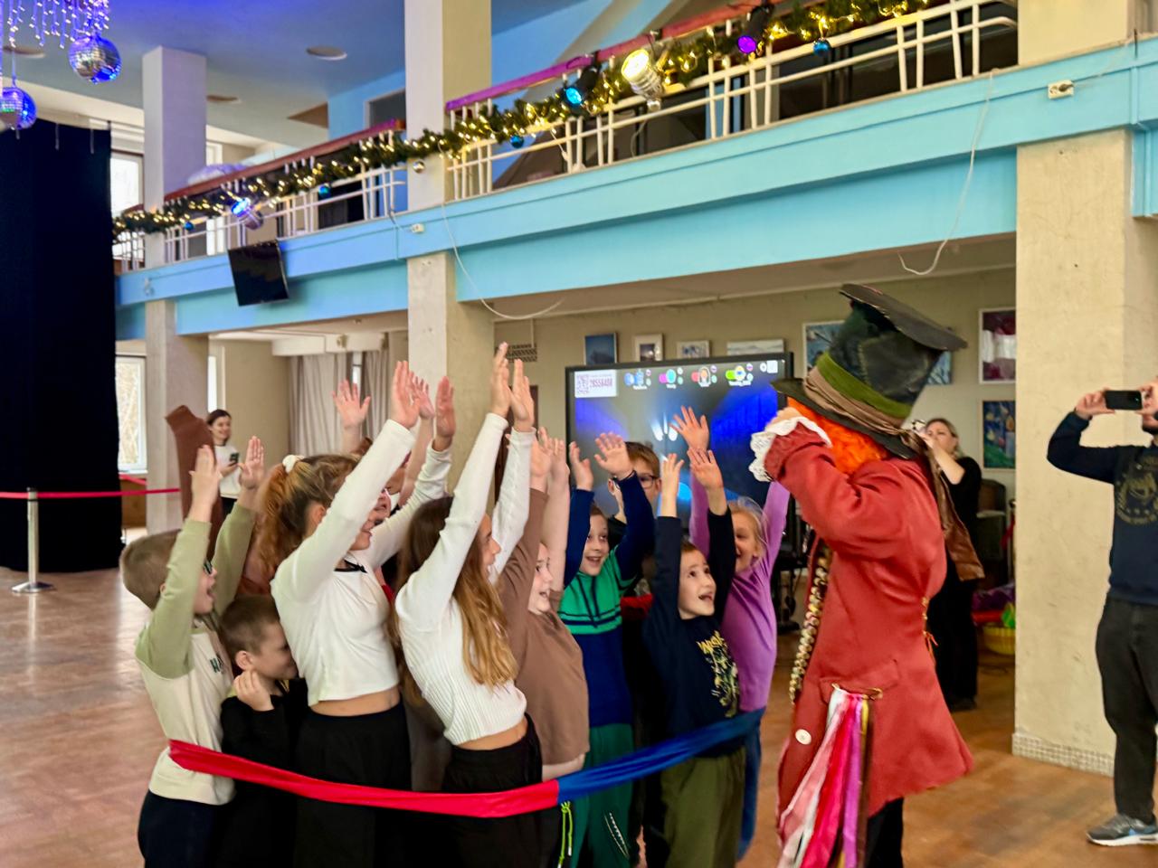 Зал был оформлен в ярком, сказочном стиле: световые эффекты, тематическая фотозона и красочные костюмы актеров помогли создать атмосферу настоящего путешествия в Страну чудес.