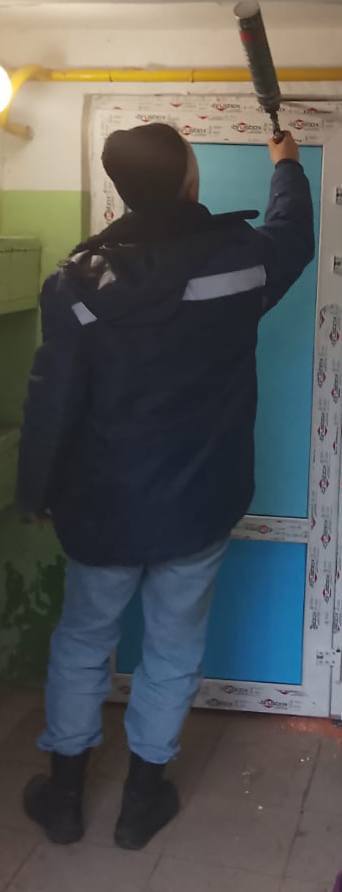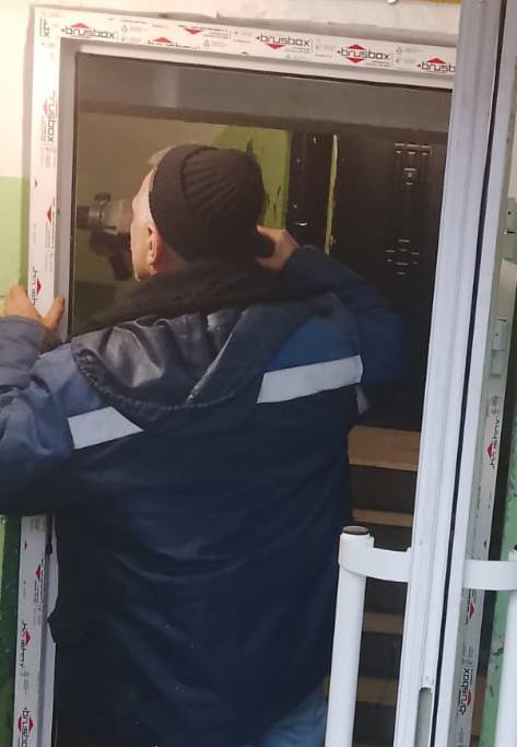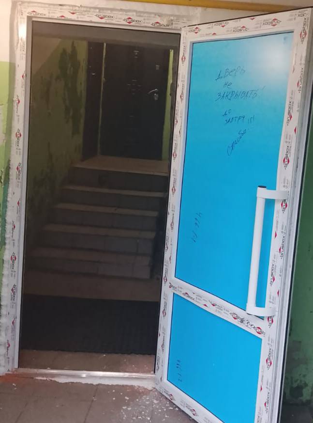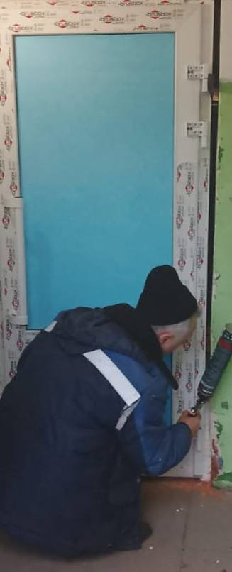 Дверь надежно закреплена, швы заделаны. Теперь в подъезде станет теплее, тише и безопаснее!