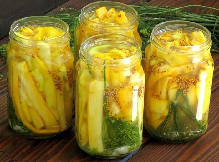 Кабачки, замаринованные с горчицей, завоевывают доверие и восхищение. Они поражают своим аппетитным янтарным оттенком и нежным ароматом, который ненавязчиво переплетается с остротой горчицы. Каждый укус позволяет испытать удивление от того, что это всего лишь обычные кабачки, которые превращаются в деликатес.