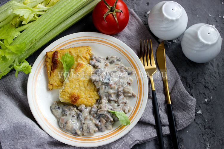 Перед подачей подливу стоит разогреть и подавать в теплому виде, например, с мамалыгой или просто с гарниром по желанию.
