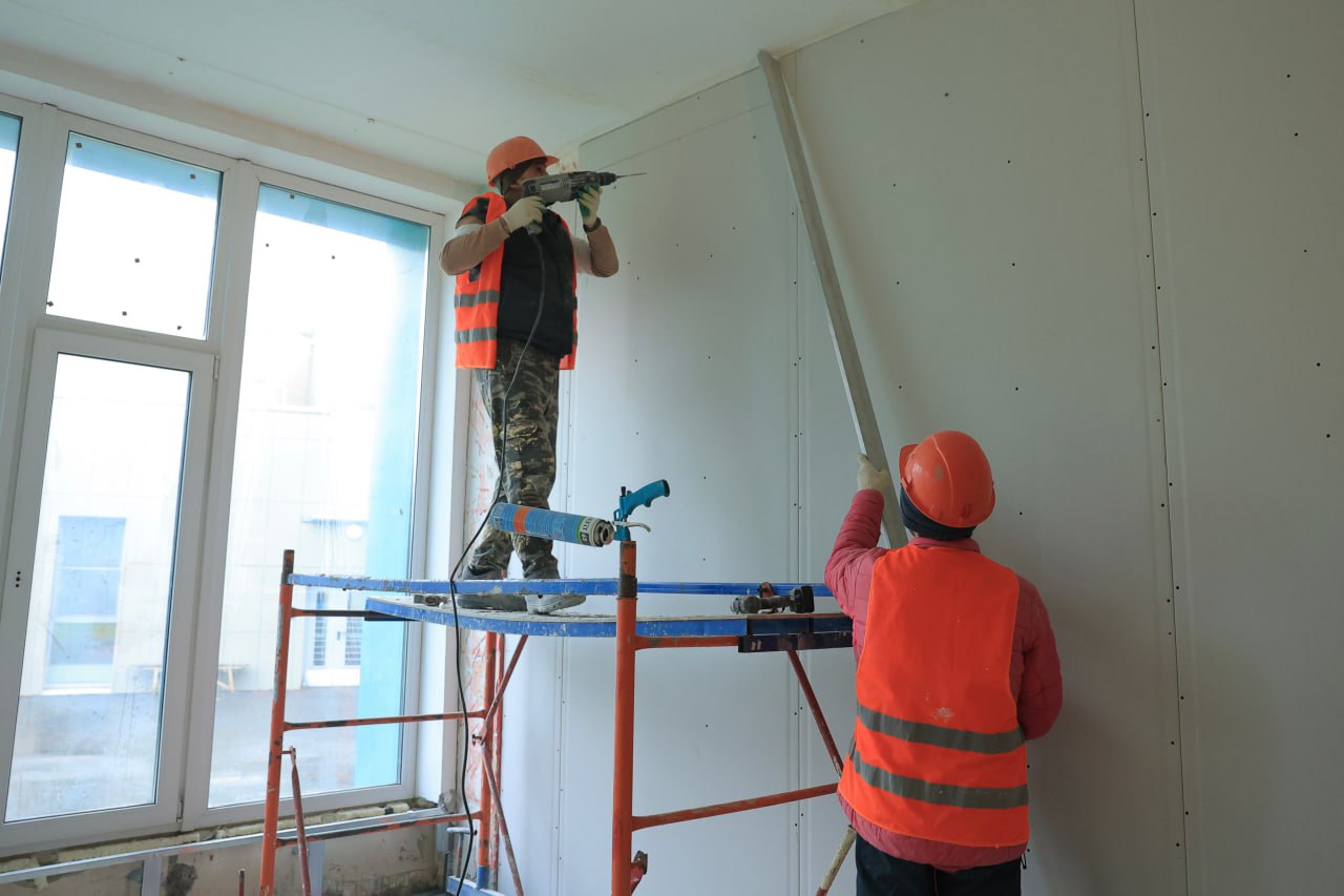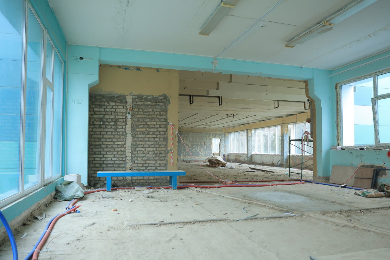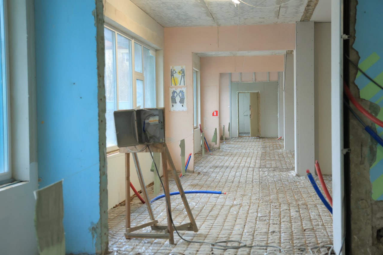 В настоящее время в трёхэтажном здании общей площадью более 5,7 тысяч квадратных метров активно ведут общестроительные работы. Строители возводят новые перегородки классов, устанавливают систему центрального отопления и проводят другие необходимые сантехнические работы. В ближайшее время начнутся работы по стяжке полов.