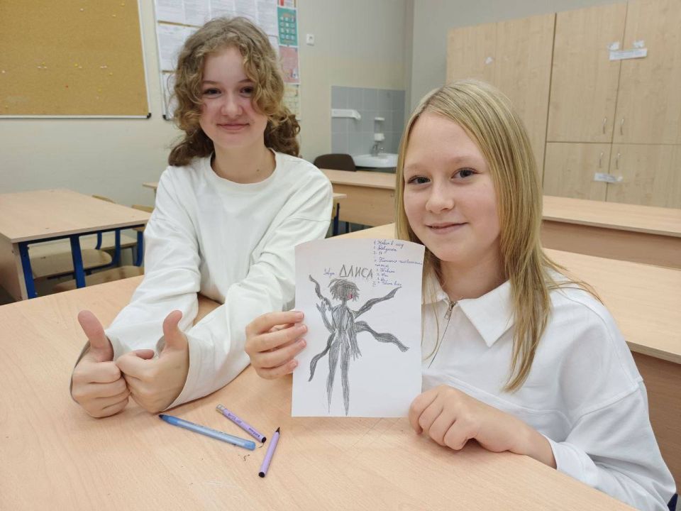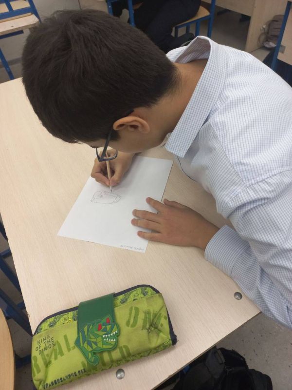 Ученикам было предложено нарисовать несуществующие животное и ответить на вопросы: пол вашего животного, придумайте имя вашему животному, сколько ему лет, где живет, чем питается, есть ли семья, есть ли враги, любимое занятие, о чем мечтает.
