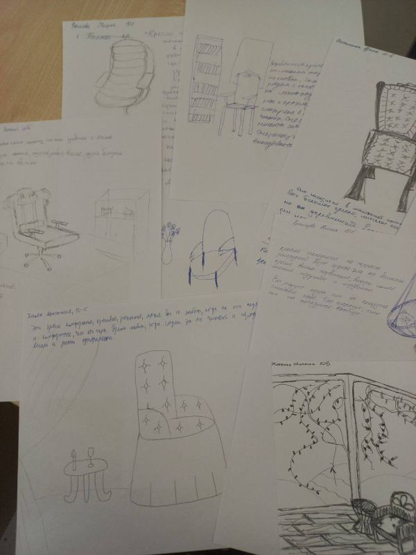 Задачей было представить себя предметом мебели (креслом) в окружающем пространстве и проанализировать. Данная работа с эмоциональными и телесными состояниями была с интересом принята детьми.