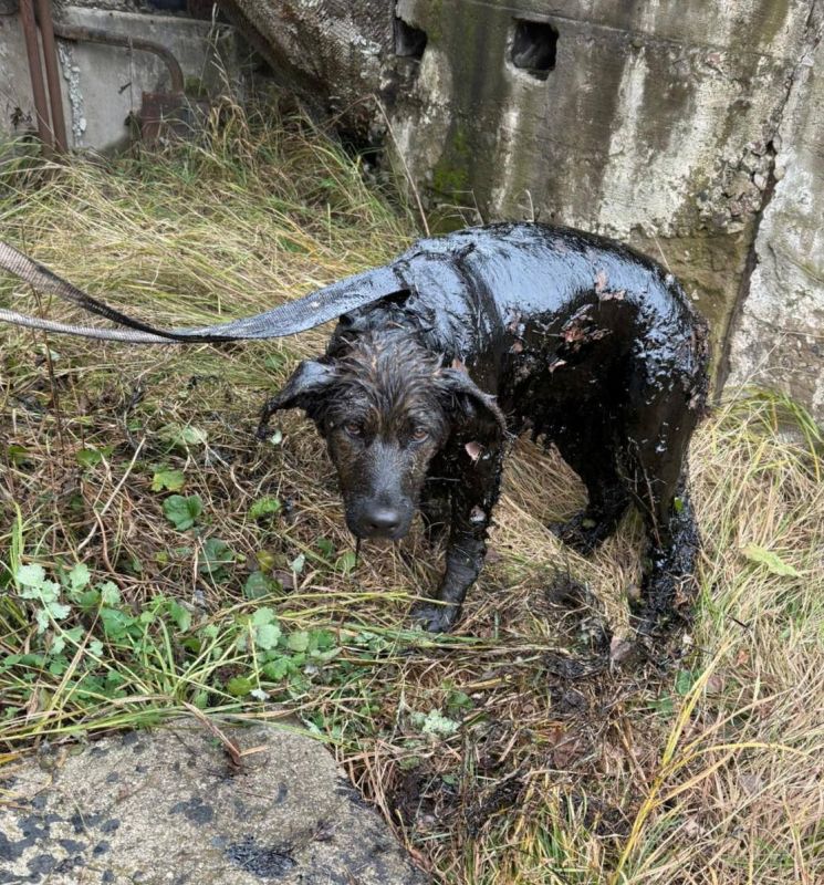 Этот милый хвостик угодил в настоящую беду — он увяз в мазуте под Истрой. Сил выбраться уже не оставалось, и пёс только тихо скулил.