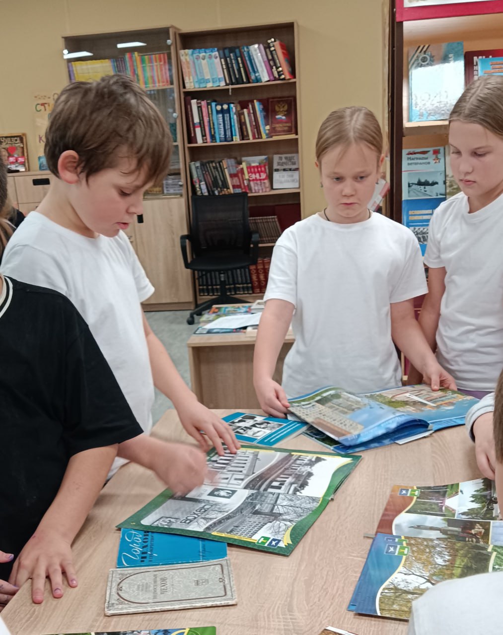 Четвероклассники познакомились с историей села Лопасня, совершили виртуальное путешествие по улице Московской, на которой сохранились здания и памятники, связанные с прошлым города. Ребята прогулялись по Рябиновой аллее, где ежегодно в преддверии Дня Победы проводят патриотическую акцию «Аллея памяти». Каждое дерево, посаженное на аллее, носит имя ветерана Великой Отечественной войны, о чём свидетельствуют именные таблички в честь героев-земляков. Учащиеся с интересом перелистывали страницы краеведческих книг, рассматривали архивные фотографии в фотоальбомах «Чеховский любимый край» и «Чеховский район: из прошлого в настоящее».