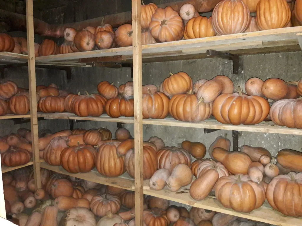 - Расположение: раскладывайте тыквы на полках или стеллажах в один слой, чтобы обеспечить хорошую вентиляцию. Не рекомендуется ставить плоды друг на друга — это может повредить их.