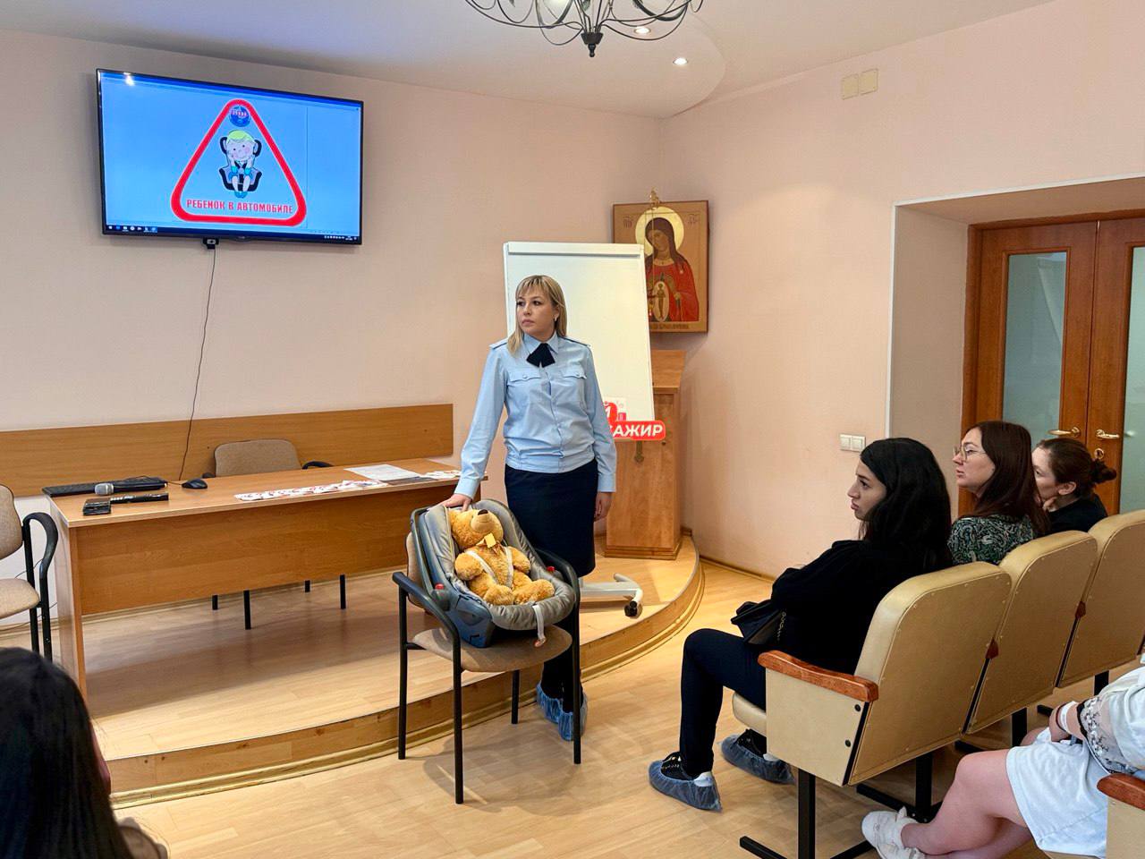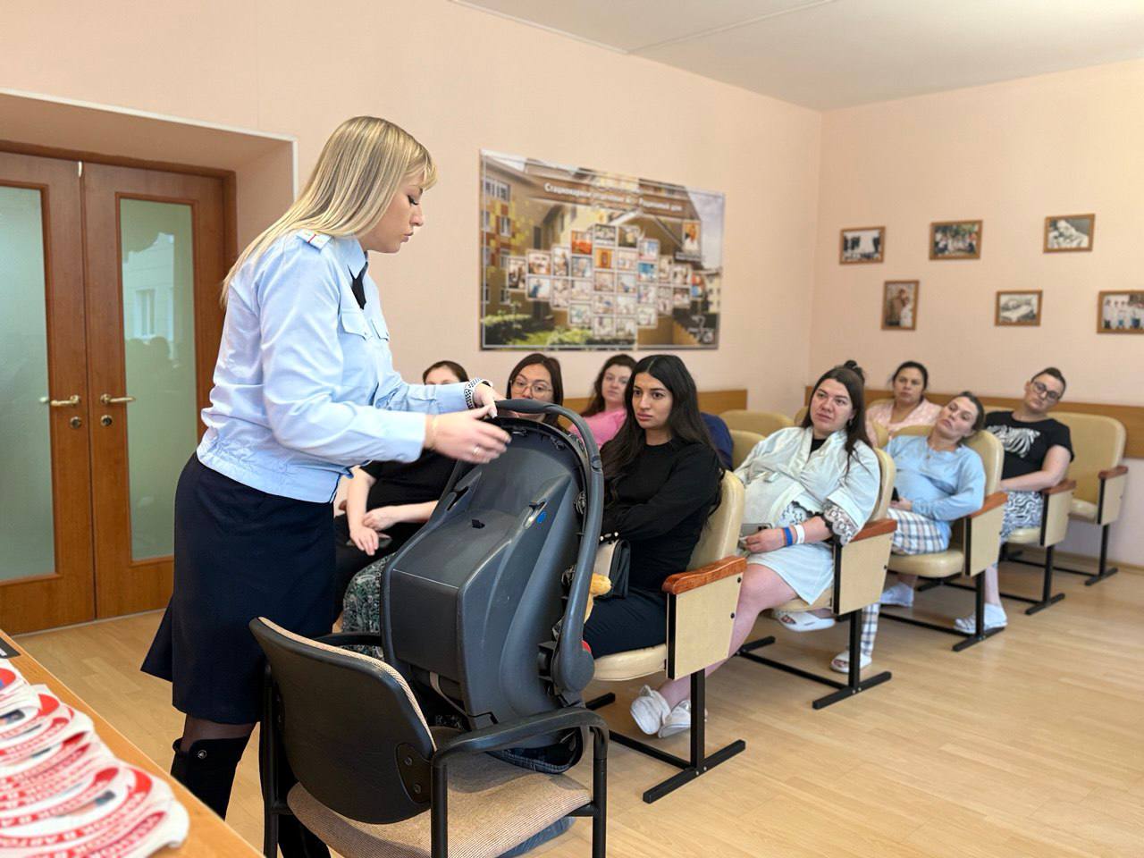 Сотрудники ГАИ Люберец рассказали будущим мамам о важности использования детского кресла