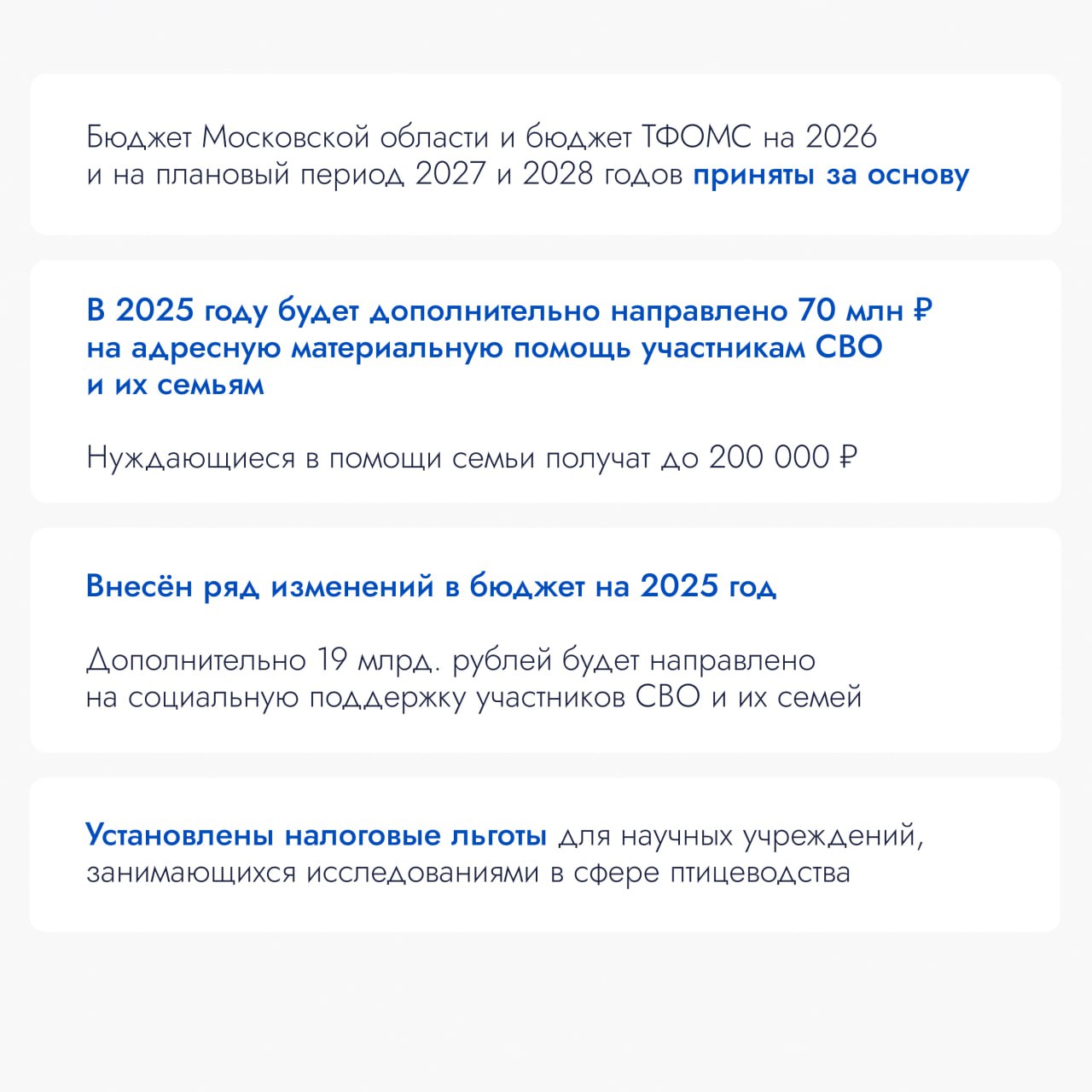 Итоги законотворческой деятельности Мособлдумы за ноябрь – 2025