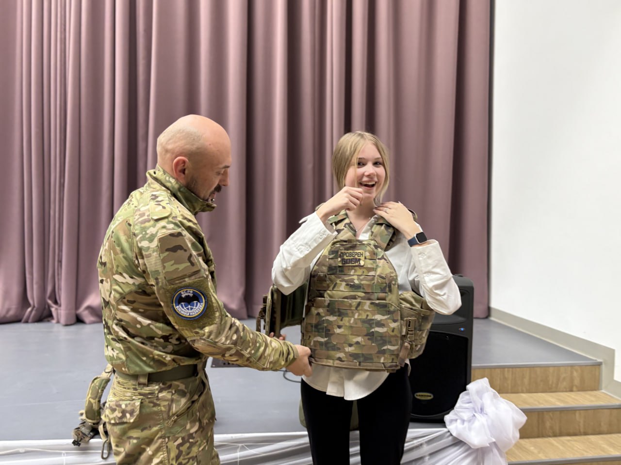 Гости рассказали, как оказывать первую медпомощь и эвакуировать раненого товарища из зоны условного обстрела. Каждый из ребят смог попробовать себя в роли спасателя и почувствовать ответственность за жизнь других.