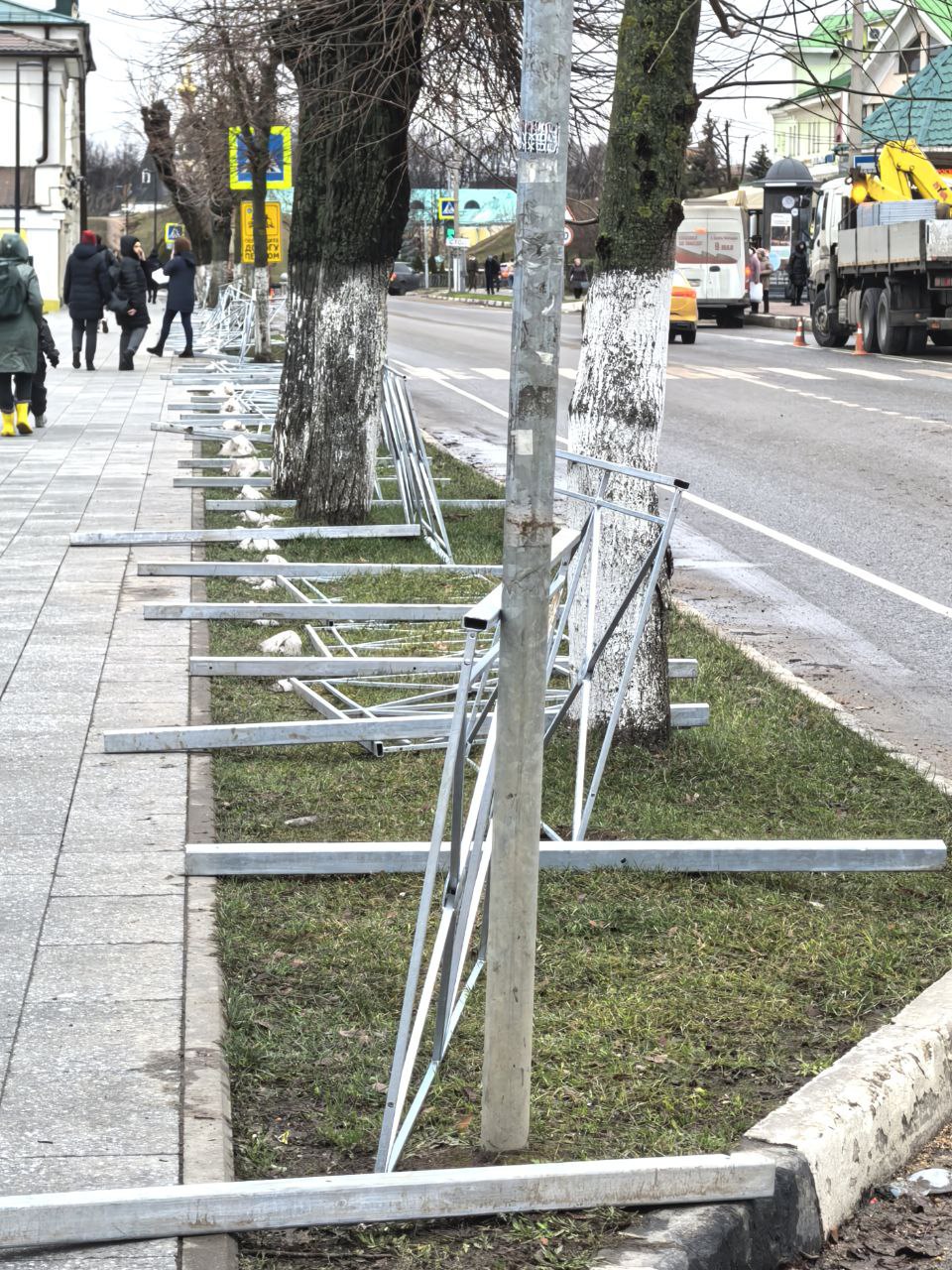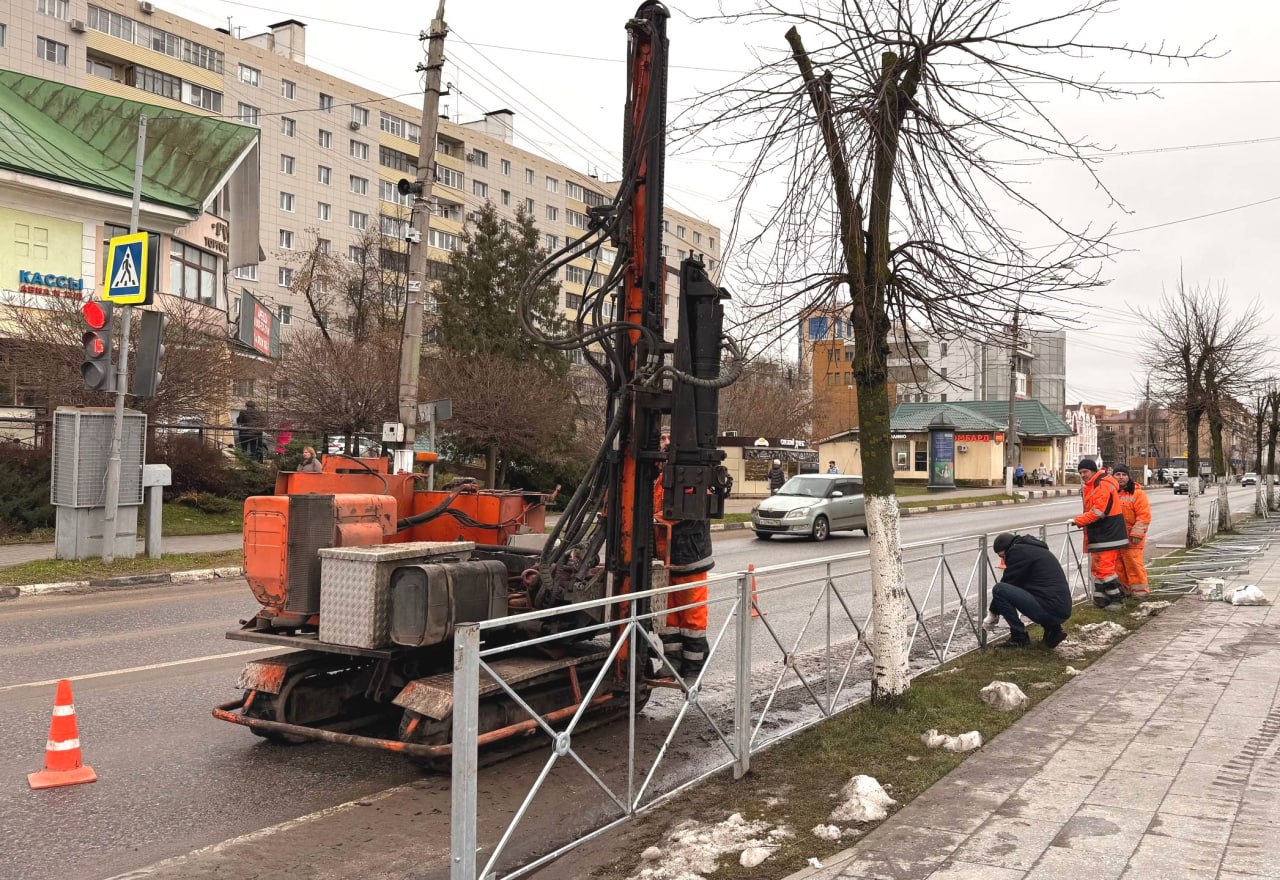 На одной из центральных улиц Дмитрова «Мосавтодор» устанавливает пешеходное ограждение