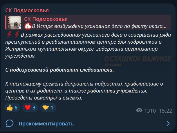 Прокуратура начала проверку всех органов профилактики, связанных с семьями пострадавших детей. Дело находится на контроле прокурора Московской области Сергея Забатурина.