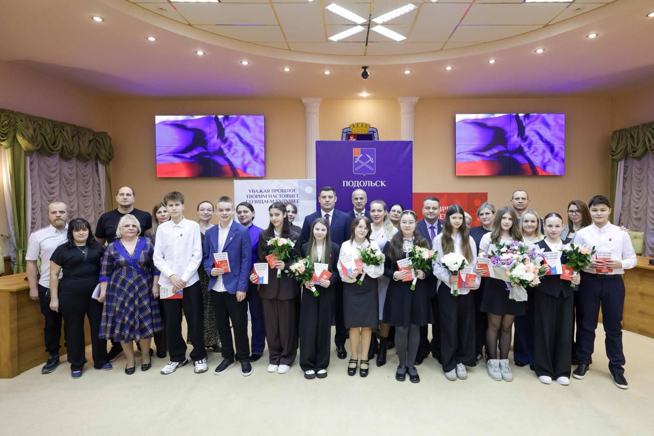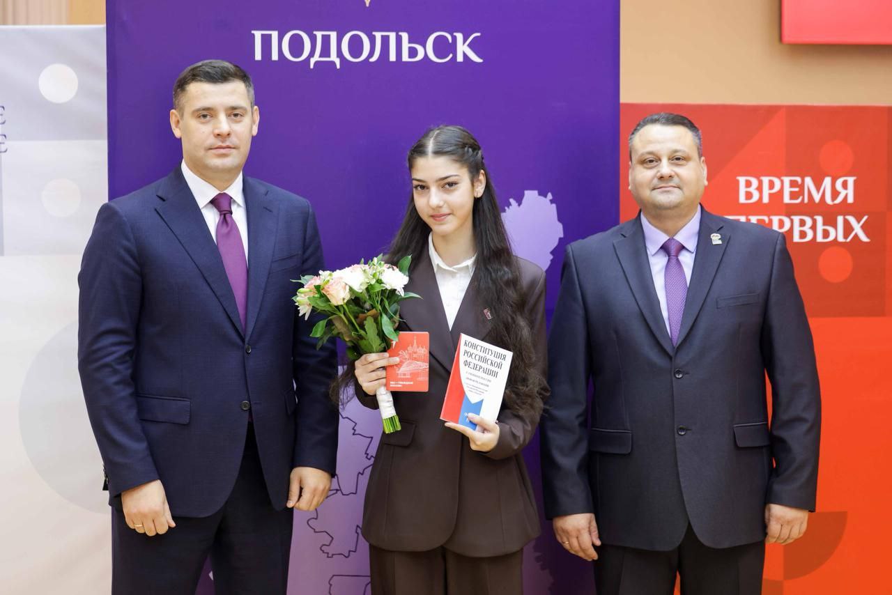 Получение главного документа гражданина России впервые — это важный шаг ко взрослой жизни, к осознанной ответственности за свои действия и к участию в жизни общества. Желаю успехов, новых открытий и радостных моментов. Пусть ваши знания, таланты и энергия служат на благо нашего Подольска, вашей семьи и всей страны.