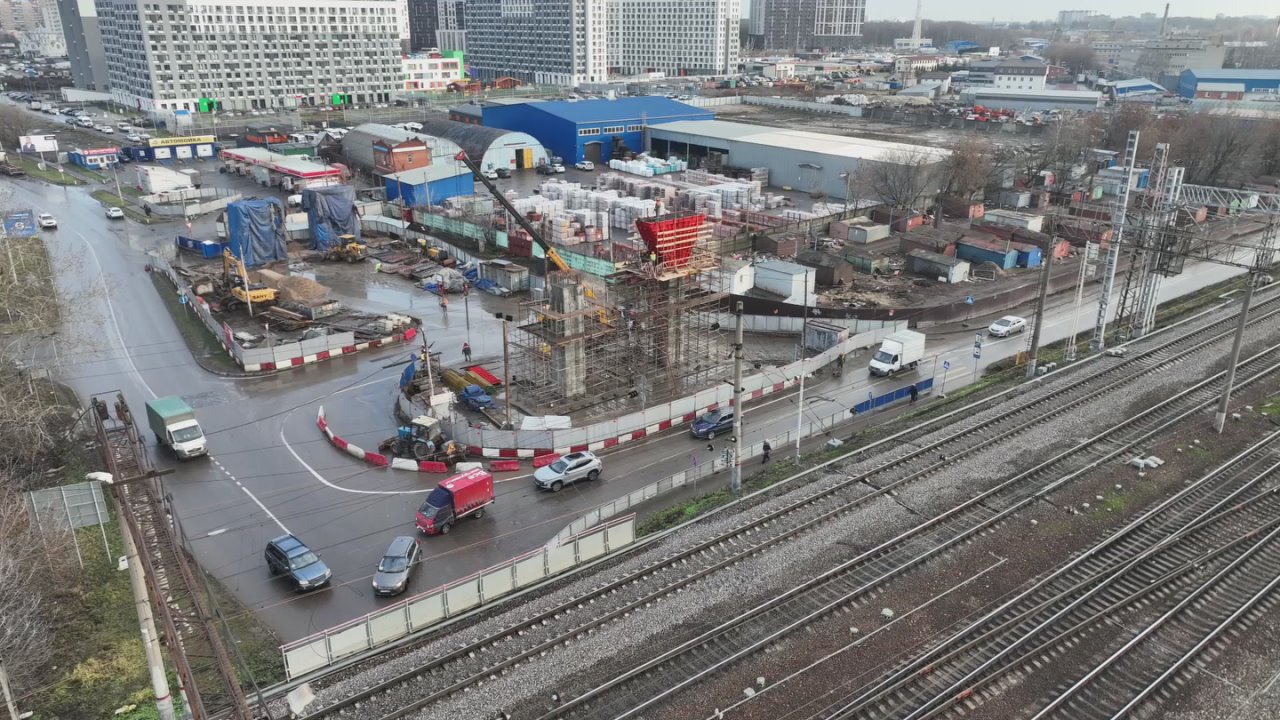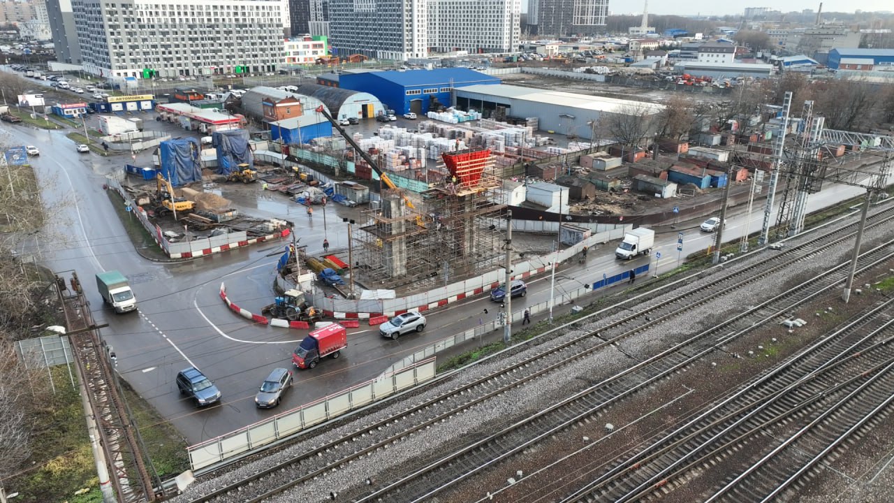 К бетонированию ригеля на одной из опор будущего путепровода над железнодорожными путями в Люберцах приступил подрядчик.