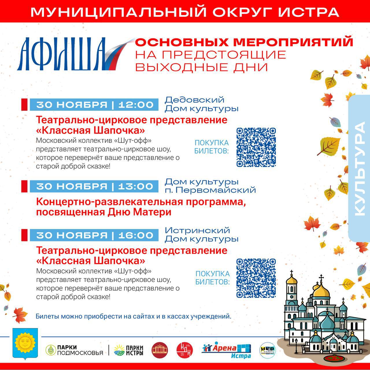 Традиционно по пятницам - основная программа мероприятий выходного дня в общей афише.