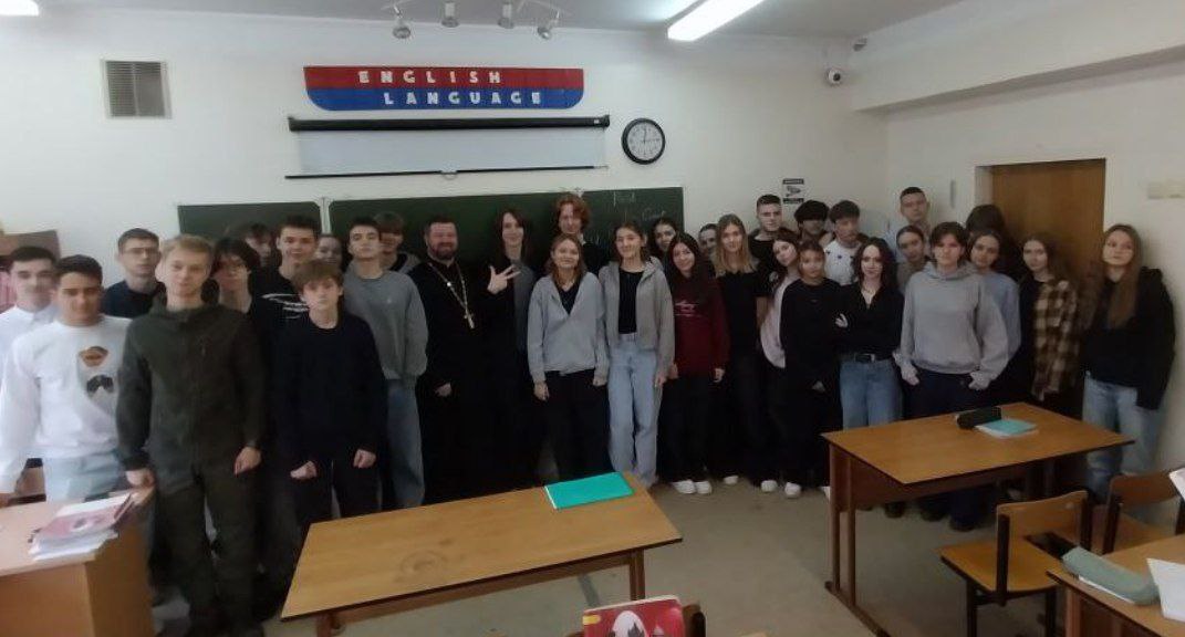 Сегодня в рамках проведения традиционного мероприятия «Диалог со священником» состоялась встреча учеников 10х классов гимназии №2 с настоятелем Никольского Храма деревни Крюково О. Владимиром (Тимченко).