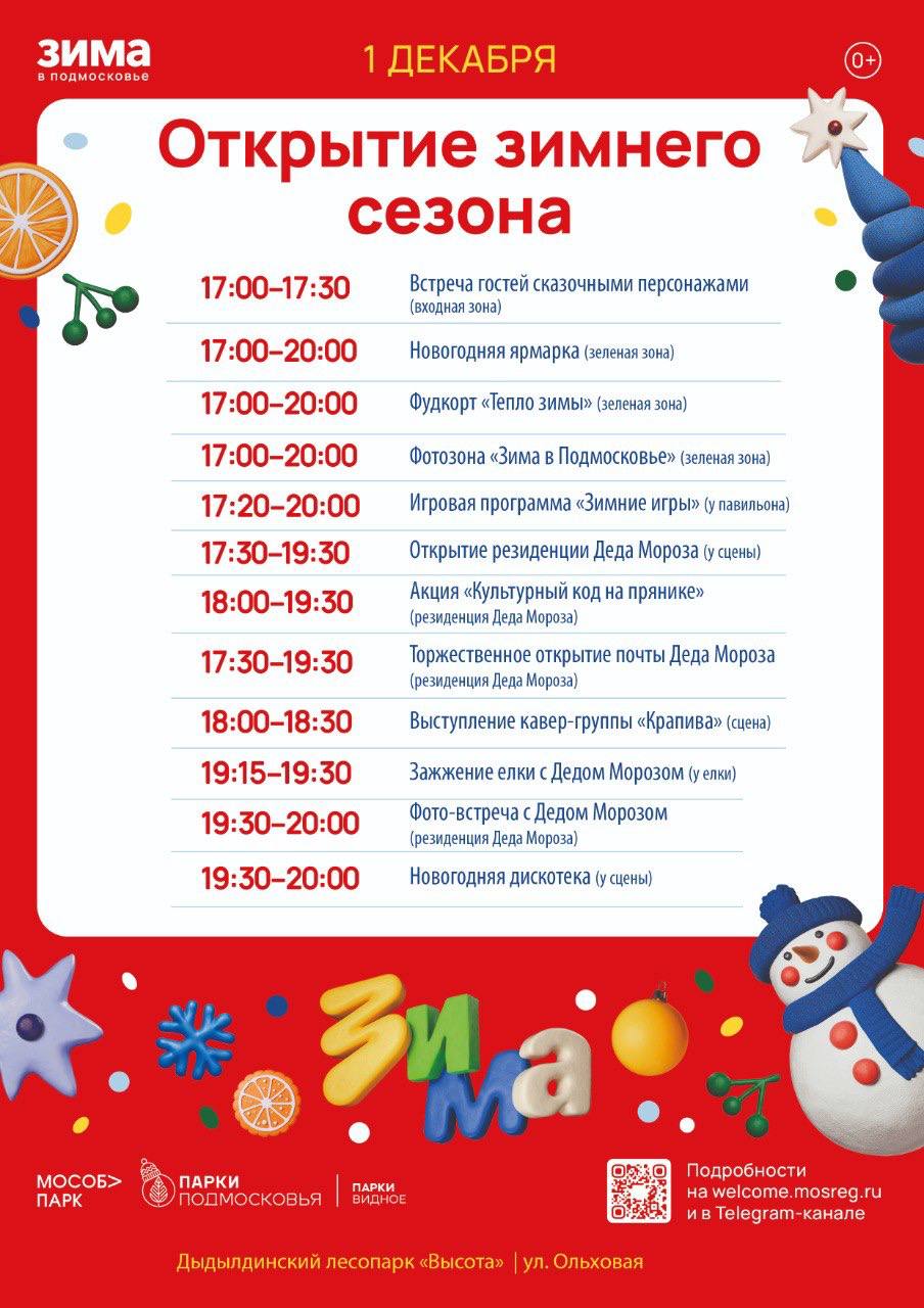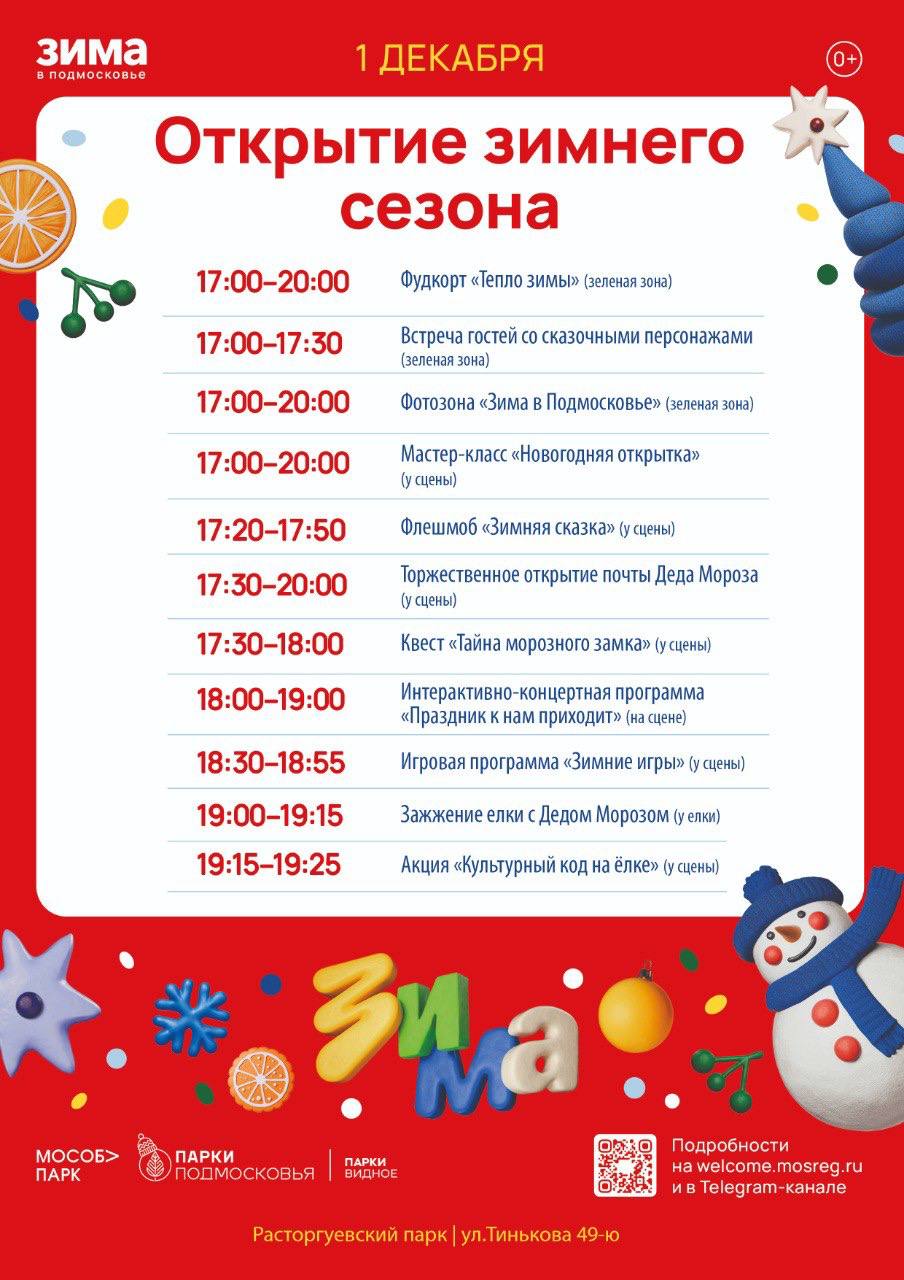 1 ДЕКАБРЯ: ВСТРЕЧАЙТЕ ЗИМУ ВОЛШЕБНО СРАЗУ В ТРЁХ ПАРКАХ ВИДНОГО!