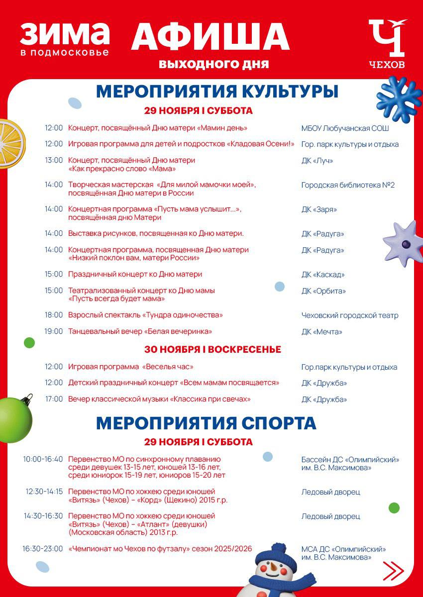 В эти выходные мы подготовили для вас обширную культурную и спортивную программу мероприятий, которые пройдут на различных площадках округа.
