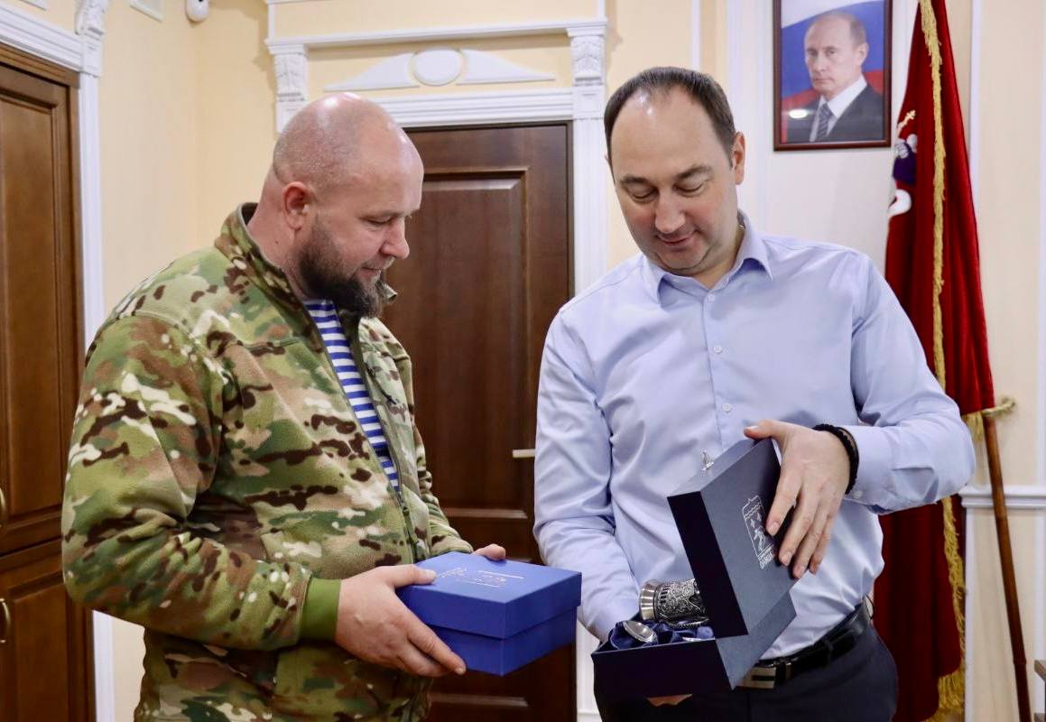 "Рад нашей встрече. Вы и сослуживцы - наши герои, мы гордимся вами и вашими подвигами. Спасибо, что защищаете интересы России и мирных жителей нашей страны. Помните, мы всегда готовы помочь вам, ждем возвращения с победой", - сказал руководитель муниципалитета.