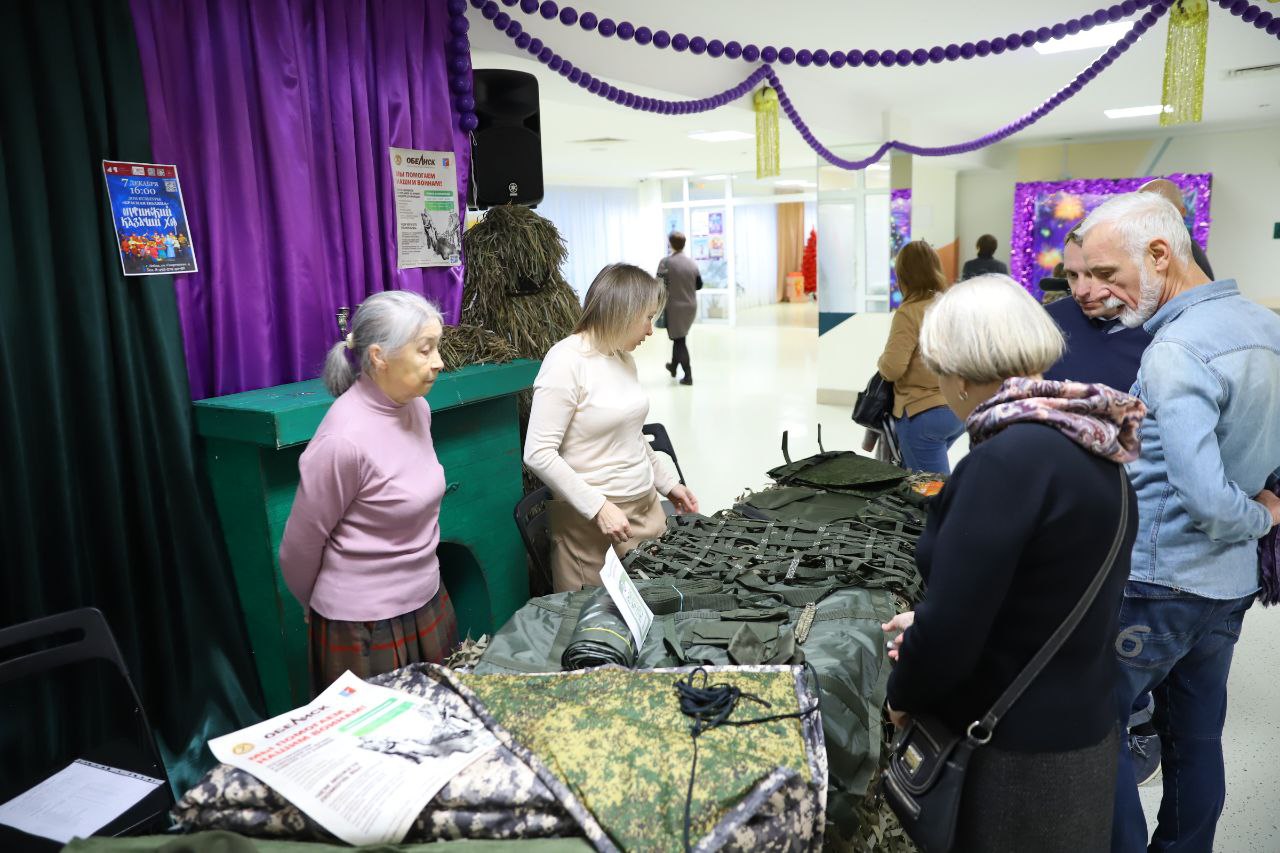 Перед началом мероприятия желающие познакомились с работой волонтёров из Центров помощи «Обелиск» и «Свечной блиндажик», члены которого изготавливают для наших бойцов всё необходимое, от свечей до тёплой одежды и медицинских средств.